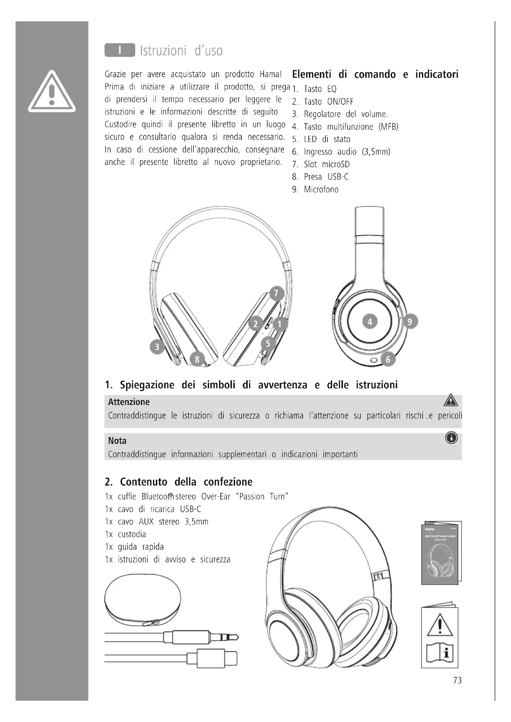 stereo Over-Ear “Passion Turn” 1x cavo di ricarica USB-C 1x cavo AUX stereo 3,5mm 1x custodia 1x guida rapida 1x istruzioni di avviso e sicurezza