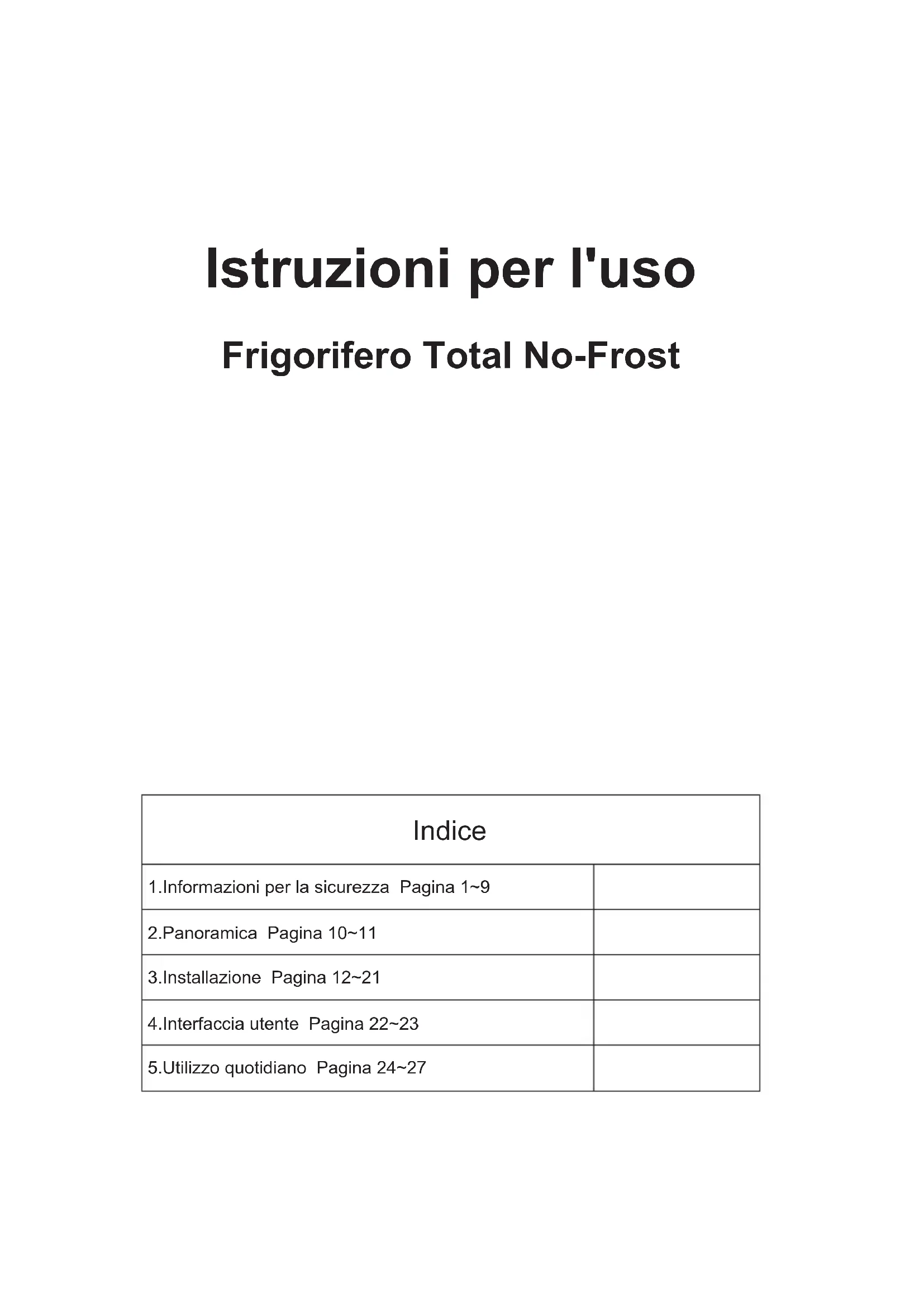 Leggere attentamente le istruzioni per l'uso e l'installazione. Le istruzioni contengono informazioni importanti relative all'installazione, all'uso e alla manutenzione dell'elettrodomestico. Il produttore non è responsabile del mancato rispetto delle istruzioni e delle avvertenze. Conservare tutta la documentazione per future consultazioni o per i proprietari successivi. x Collegare l'elettrodomestico all'alimentazione elettrica solo dopo aver rimosso l'imballo e le protezioni per il trasporto. Tenere lontani i bambini dall'imballo e dai relativi componenti. I cartoni pieghevoli e la pellicola di plastica potrebbero causare il soffocamento. x Prima di accendere l'elettrodomestico, attendere almeno 4 ore per consentire all'olio del compressore di assestarsi nel caso in cui l'elettrodomestico sia stato trasportato in posizione orizzontale. x Accertarsi dell'assenza di danni dovuti al trasporto. x non danneggiare il circuito di refrigerazione.2 x Tenere libere da ostruzioni le aperture di ventilazione sull'involucro del frigorifero. x Non lavare con acqua la zona del compressore e dopo la pulizia strofinarla con un panno asciutto per evitare la formazione di ruggine. x L'elettrodomestico deve essere maneggiato sempre da almeno due persone perché è pesante. x Installare l'elettrodomestico a livello in un'area adatta alle dimensioni e all'uso. x Accertarsi che i dati elettrici sulla targhetta siano conformi all'alimentazione elettrica. In caso contrario, rivolgersi a un elettricista. x L'elettrodomestico funziona con corrente elettrica 220-240 Vca / 50 Hz. Oscillazioni anomale della tensione possono causare il mancato avvio dell'elettrodomestico, danni al controllo della temperatura o al compressore oppure rumori anomali durante il funzionamento. In tal caso, è opportuno montare un regolatore automatico. x Solo per il Regno Unito: il cavo di alimentazione dell'elettrodomestico è dotato di una spina a 3 conduttori (collegata a terra) adatta a una presa standard a 3 conduttori (collegata a terra). Non tagliare né smontare mai il terzo conduttore (collegamento a terra). Dopo l'installazione dell'elettrodomestico, la spina deve essere accessibile. x Accertarsi che il cavo di alimentazione non resti impigliato sotto l'apparecchiatura per evitare che si laceri o si danneggi. Se il cavo di alimentazione è danneggiato, deve essere3 sostituito dal produttore, da un tecnico dell'assistenza o da una persona con analoga qualifica per evitare rischi. x Non installare l'elettrodomestico in luoghi umidi, unti o polverosi, e non esporlo all'acqua e alla luce solare diretta. x Non installare l'elettrodomestico accanto a caloriferi o materiali infiammabili. x PER gli elettrodomestici dotati di comparto congelatore, non aprire il coperchio in caso di interruzione dell'alimentazione. Gli alimenti surgelati non dovrebbero guastarsi se l'interruzione dell'alimentazione dura meno ore di quelle indicate sull'etichetta della classificazione (tempo di aumento della temperatura). Se l'interruzione dell'alimentazione dura di più, controllare gli alimenti e consumarli immediatamente o ricongelarli solo dopo averli cotti. x Se il coperchio dell'elettrodomestico non si riapre facilmente subito dopo che è stato chiuso, non si tratta di un problema, in quanto tale condizione dipende dalla differenza di pressione che si bilancerà entro pochi minuti consentendo nuovamente l'apertura del coperchio. x Non conservare medicinali, batteri o sostanze chimiche nell'elettrodomestico. Questo elettrodomestico è destinato ad ambienti residenziali, per cui si sconsiglia di conservare materiali che richiedono temperature rigide.4 x Non tirare o piegare eccessivamente il cavo di alimentazione e non toccare la spina con le mani umide. x Non conservare nell'elettrodomestico prodotti contenenti propellenti infiammabili (ad es. bombolette spray) o sostanze esplosive. Pericolo di esplosione! x Non collocare elementi instabili (oggetti pesanti, contenitori pieni d'acqua) sopra il frigorifero, per evitare lesioni personali dovute a cadute o scosse elettriche causate dal contatto con l'acqua. x Non adoperare apparecchiature elettriche all'interno dei comparti per la conservazione degli alimenti, a meno che non siano del tipo consigliato dal produttore. x Per evitare rotture o lesioni personali, non toccare gli elementi di raffreddamento interni, specialmente con le mani bagnate. x Sono a rischio i bambini, le persone affette da limitazione delle capacità fisiche, mentali o sensoriali, nonché le persone che non conoscono perfettamente il funzionamento sicuro dell'elettrodomestico. x Accertarsi che i bambini e le persone vulnerabili siano consapevoli dei pericoli. Una persona responsabile della sicurezza deve sorvegliare o istruire i bambini e le persone vulnerabili che adoperano l'elettrodomestico. L'elettrodomestico non deve essere utilizzato da bambini di età inferiore a 8 anni. x Impedire ai bambini di giocare con l'elettrodomestico.5 x I bambini di età compresa tra 3 e 8 anni possono caricare e scaricare questo elettrodomestico. x PER gli elettrodomestici dotati di comparto congelatore: non conservare liquidi in bottiglia o in lattina (specialmente bevande gassate) nel comparto congelatore. Le bottiglie e lattine possono scoppiare! x PER gli elettrodomestici dotati di comparto congelatore: non mettere mai in bocca alimenti surgelati subito dopo averli estratti dal comparto congelatore. Pericolo di ustioni dovute alla bassa temperatura! x Accertarsi sempre che i componenti di plastica e le guarnizioni degli sportelli siano privi di olio e grasso. In caso contrario, i componenti di plastica e le guarnizioni degli sportelli diventano porosi. x Prima di qualunque intervento, scollegare il cavo di alimentazione dalla presa elettrica. x non usare oggetti meccanici o utensili diversi da quelli consigliati dal produttore per accelerare lo sbrinamento. x Non adoperare oggetti appuntiti o affilati (ad es. coltelli o forchette) per rimuover
