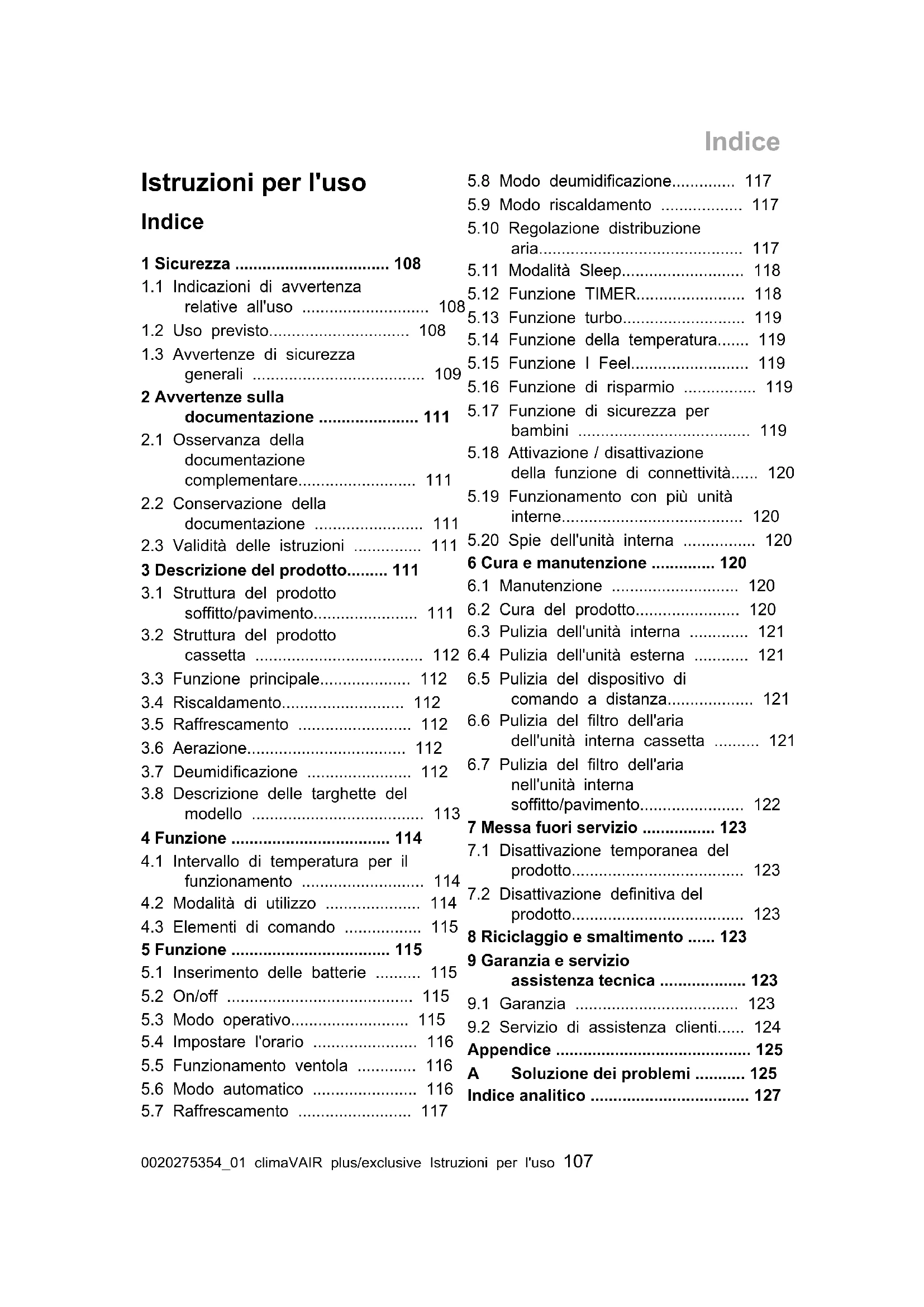 - Indice analitico Sicurezza 108 Istruzioni per l'uso climaVAIR plus/exclusive 0020275354_01 1 Sicurezza p. 1271