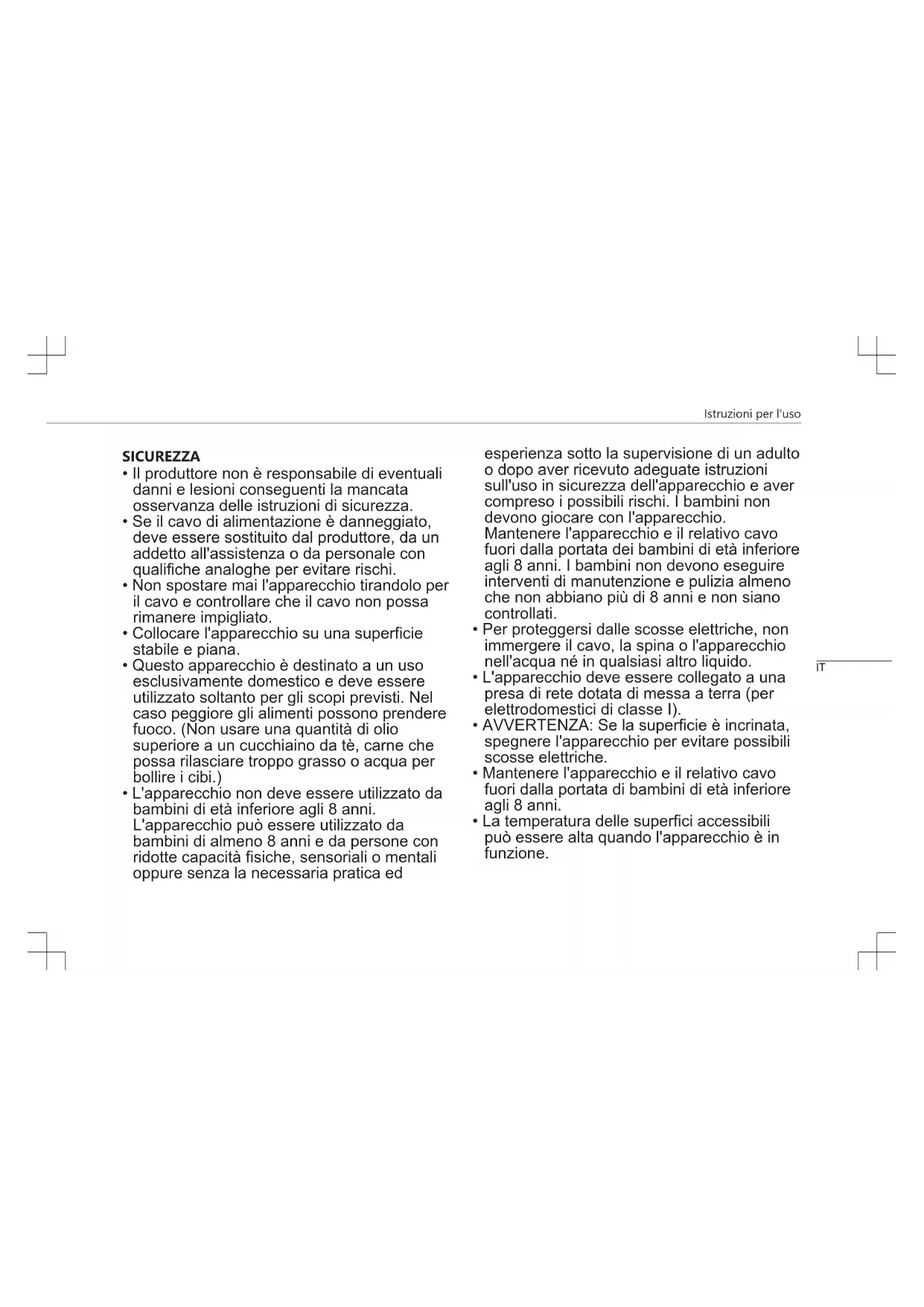 - La temperatura delle superfici accessibili può essere alta quando l'apparecchio è in funzione. ITIstruzioni per l'uso