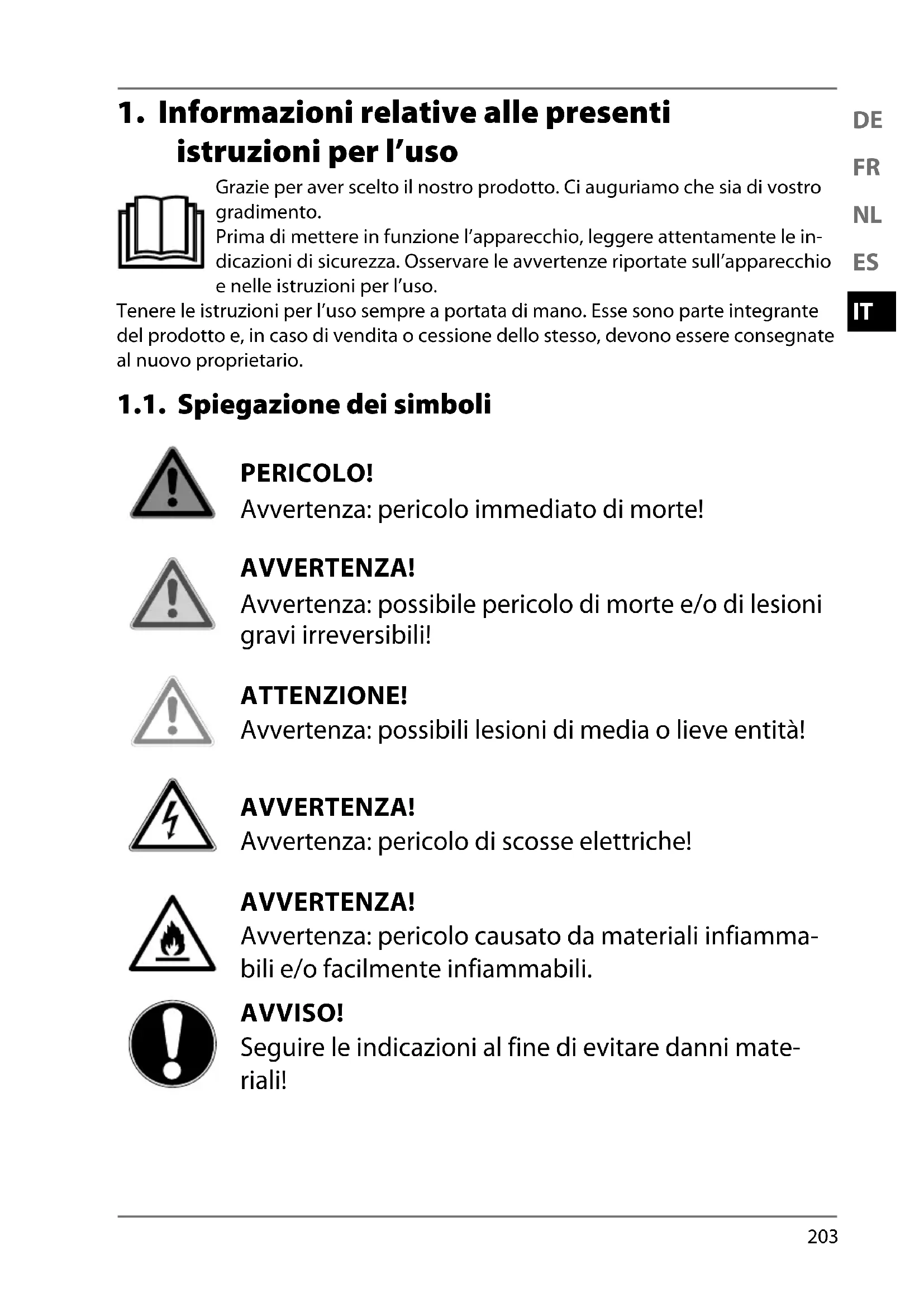 1. Informazioni relative alle presenti istruzioni per l’uso ........................ 203