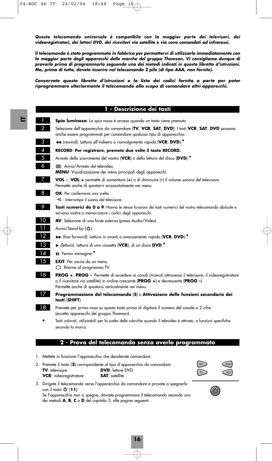 Scarica le istruzioni per il tuo in formato PDF gratuitamente! Trova il tuo manuale ROC 46 - THOMSON e riprendi in mano il tuo dispositivo elettronico. In questa pagina sono pubblicati tutti i documenti necessari per l'utilizzo del tuo dispositivo. ROC 46 del marchio THOMSON.
