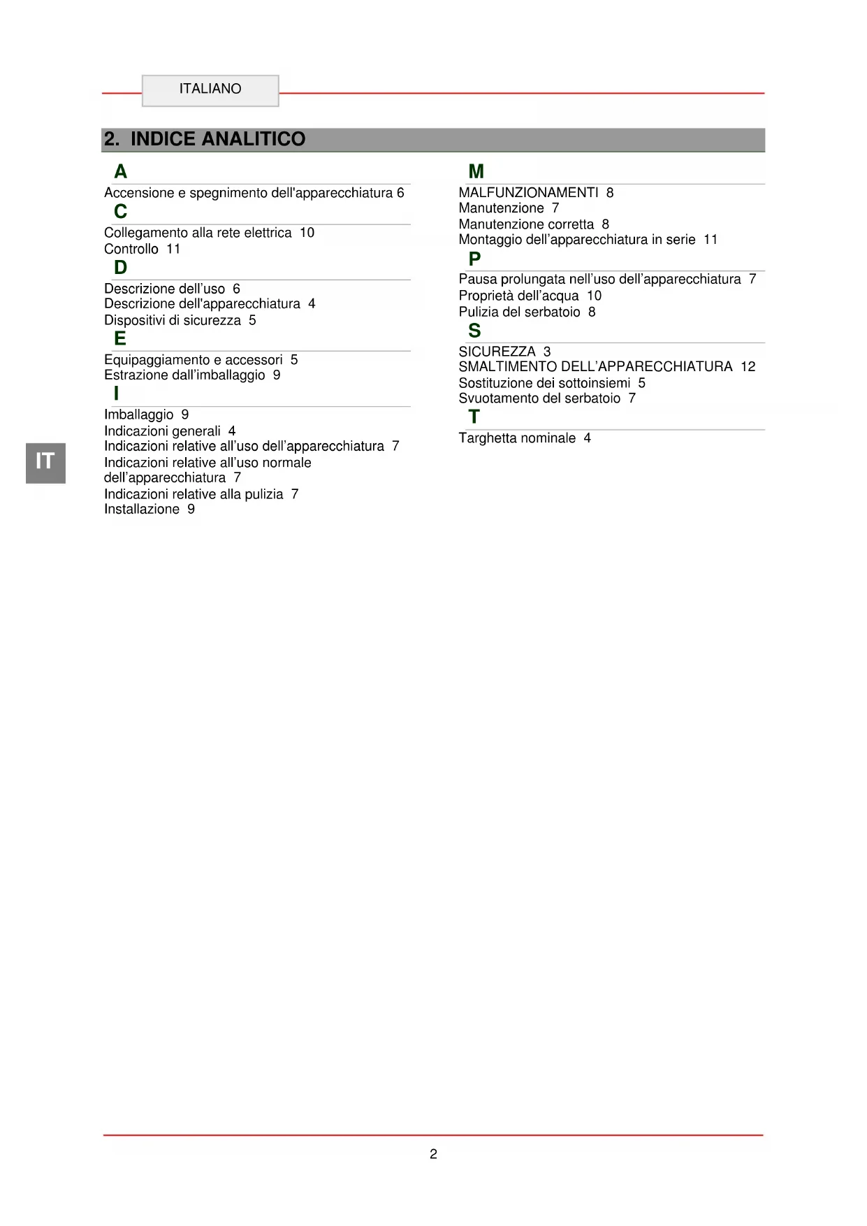MALFUNZIONAMENTI 8 Manutenzione 7 Manutenzione corretta 8 Montaggio dell’apparecchiatura in serie 11