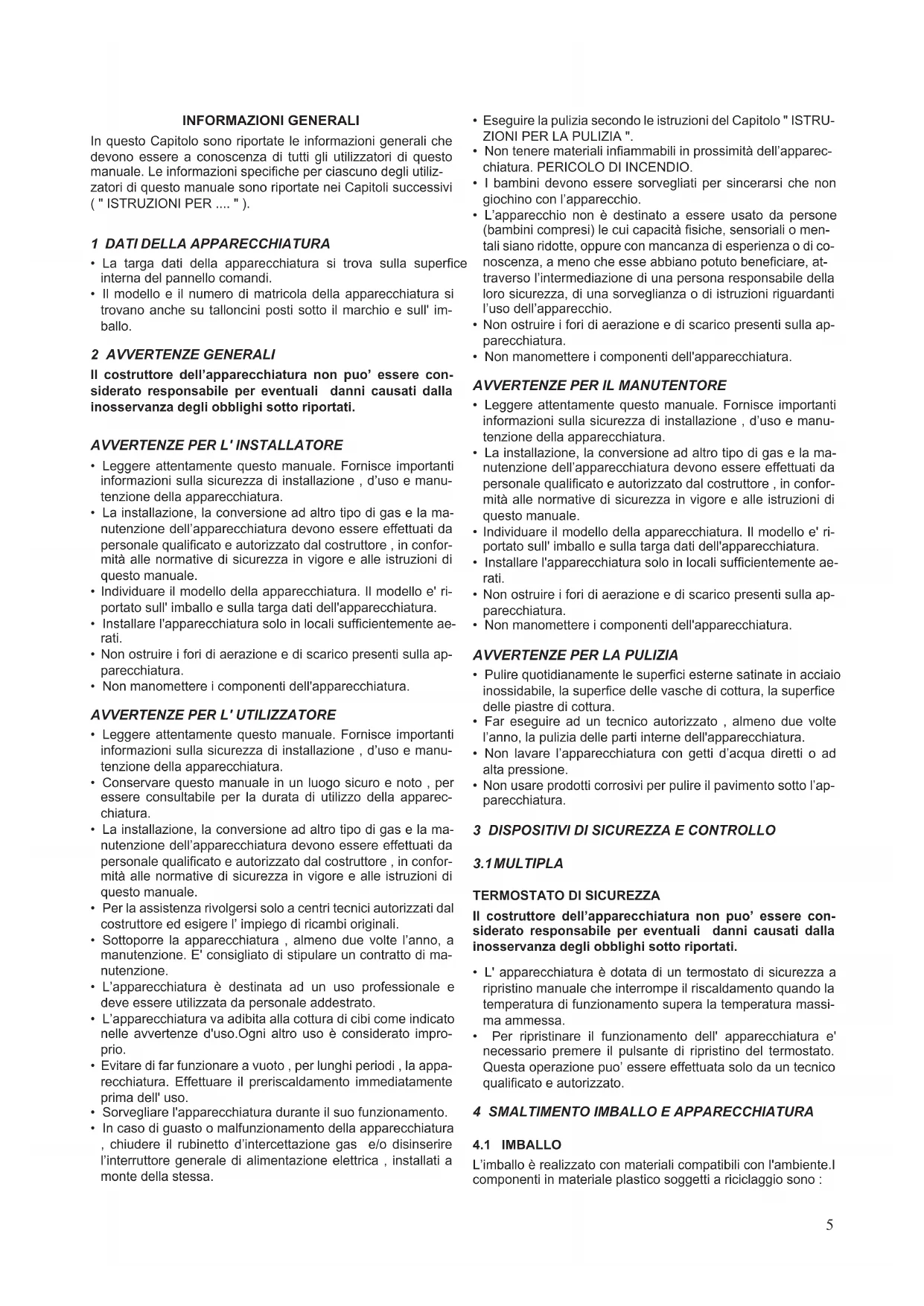 - Il modello e il numero di matricola della apparecchiatura si trovano anche su talloncini posti sotto il marchio e sull' im- ballo. 2 AVVERTENZE GENERALI Il costruttore dell’apparecchiatura non puo’ essere con- siderato responsabile per eventuali danni causati dalla inosservanza degli obblighi sotto riportati.