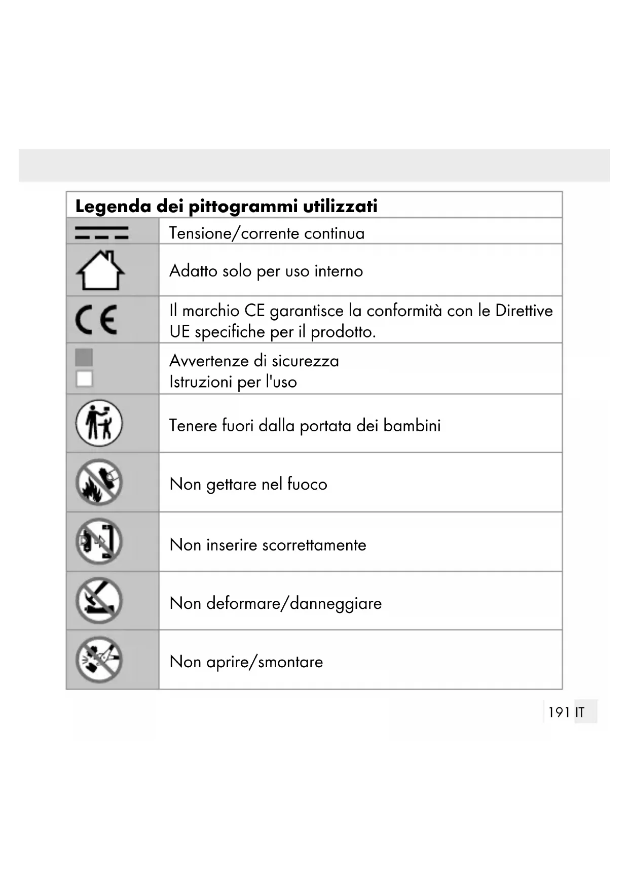 DALLA PORTATA DEI BAMBINI! L‘ingerimento può provocare ustioni chi- miche, perforazione dei tessuti molli e morte. Eventuali ustioni gravi possono comparire entro 2 ore dall‘ingerimento. Consultare im- mediatamente un medico. AVVERTENZA! AVVERTENZA PER LA BATTERIA: TENERE FUORI DALLA PORTATA DEI BAMBINI! Se il vano portabatterie non si chiude in modo sicuro, non continuare a utilizzare il prodotto e tenerlo fuori dalla portata dei bambini.199 IT ATTENZIONE! CONTIENE BATTERIE A BOTTONE/A MO-