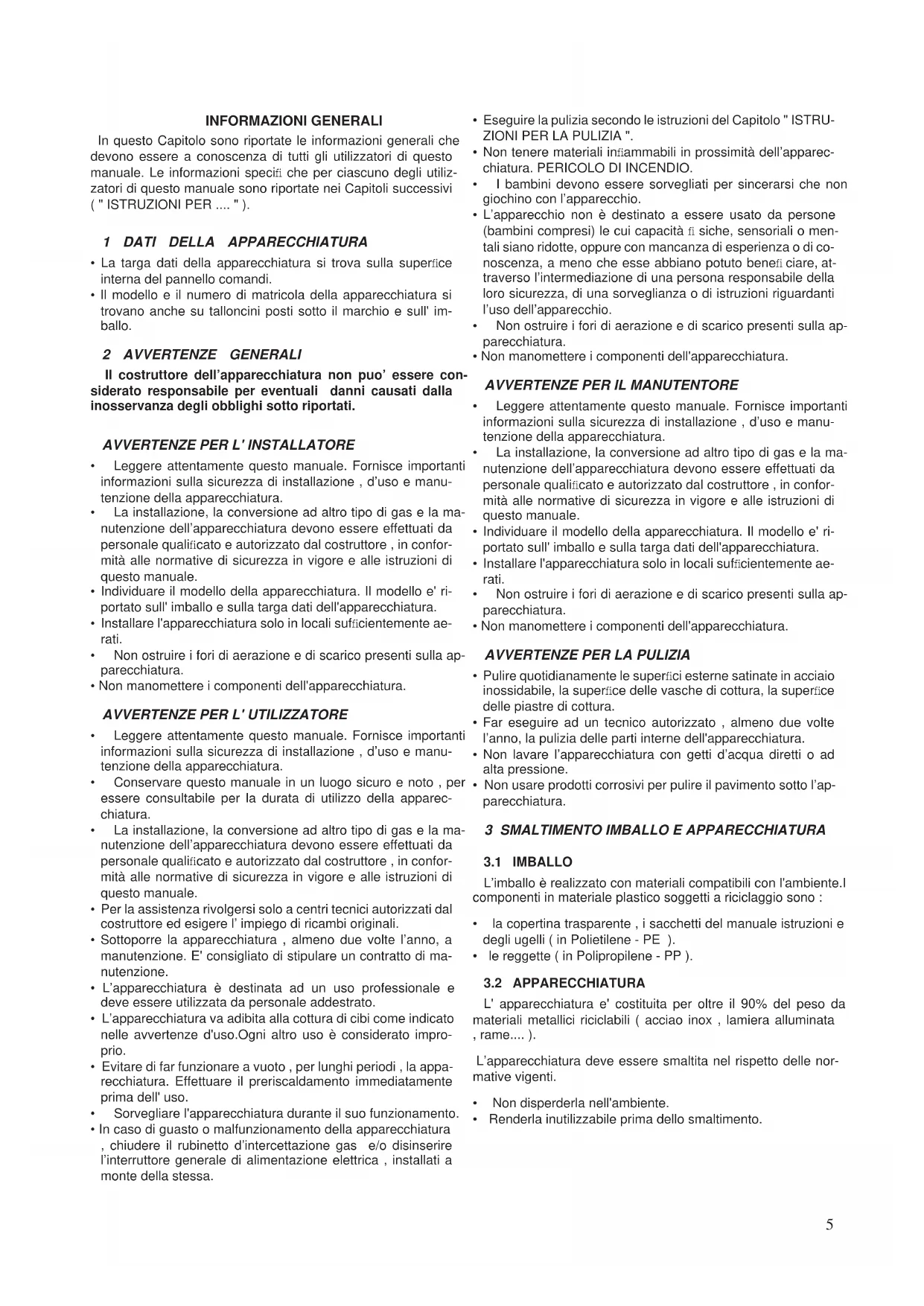 AVVERTENZE PER L' UTILIZZATORE