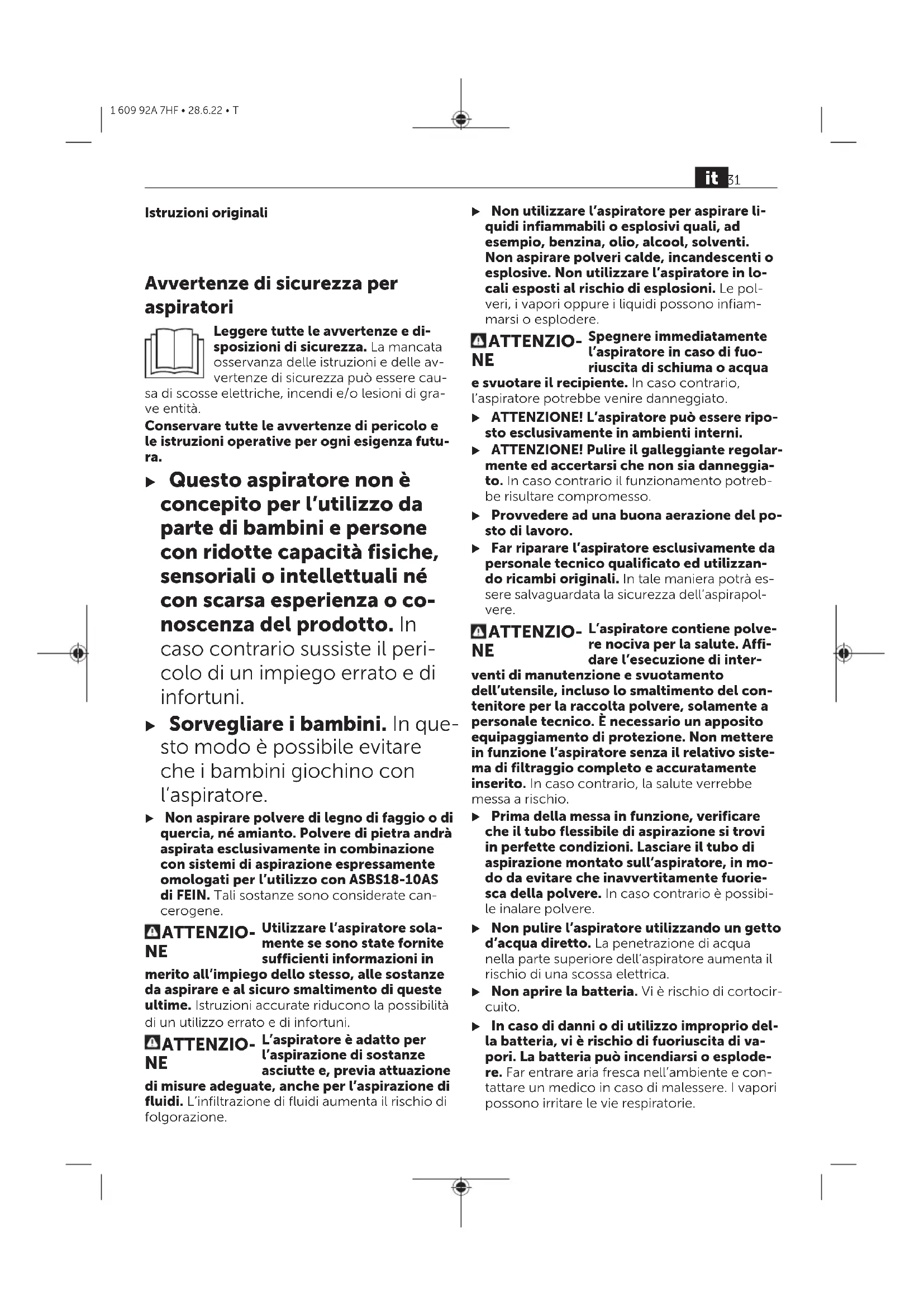 ASBS 1810 AS - Aspirapolvere Fein - Manuale utente e istruzioni gratuiti