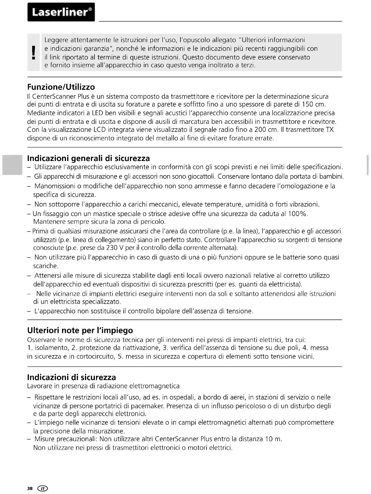MANUALE UTENTE CenterScanner Plus Laserliner
