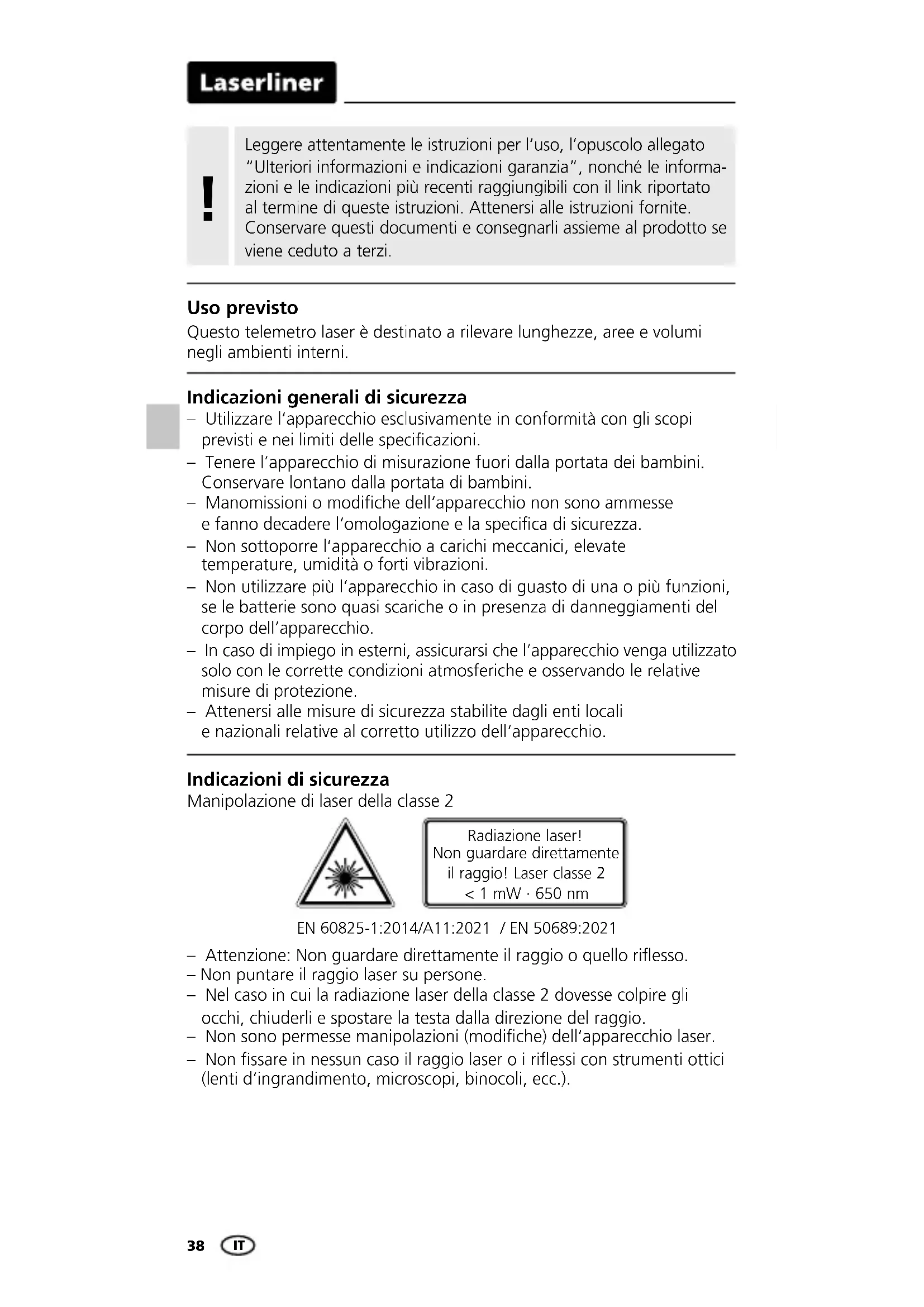 - Non sono permesse manipolazioni (modifiche) dell'apparecchio laser.
