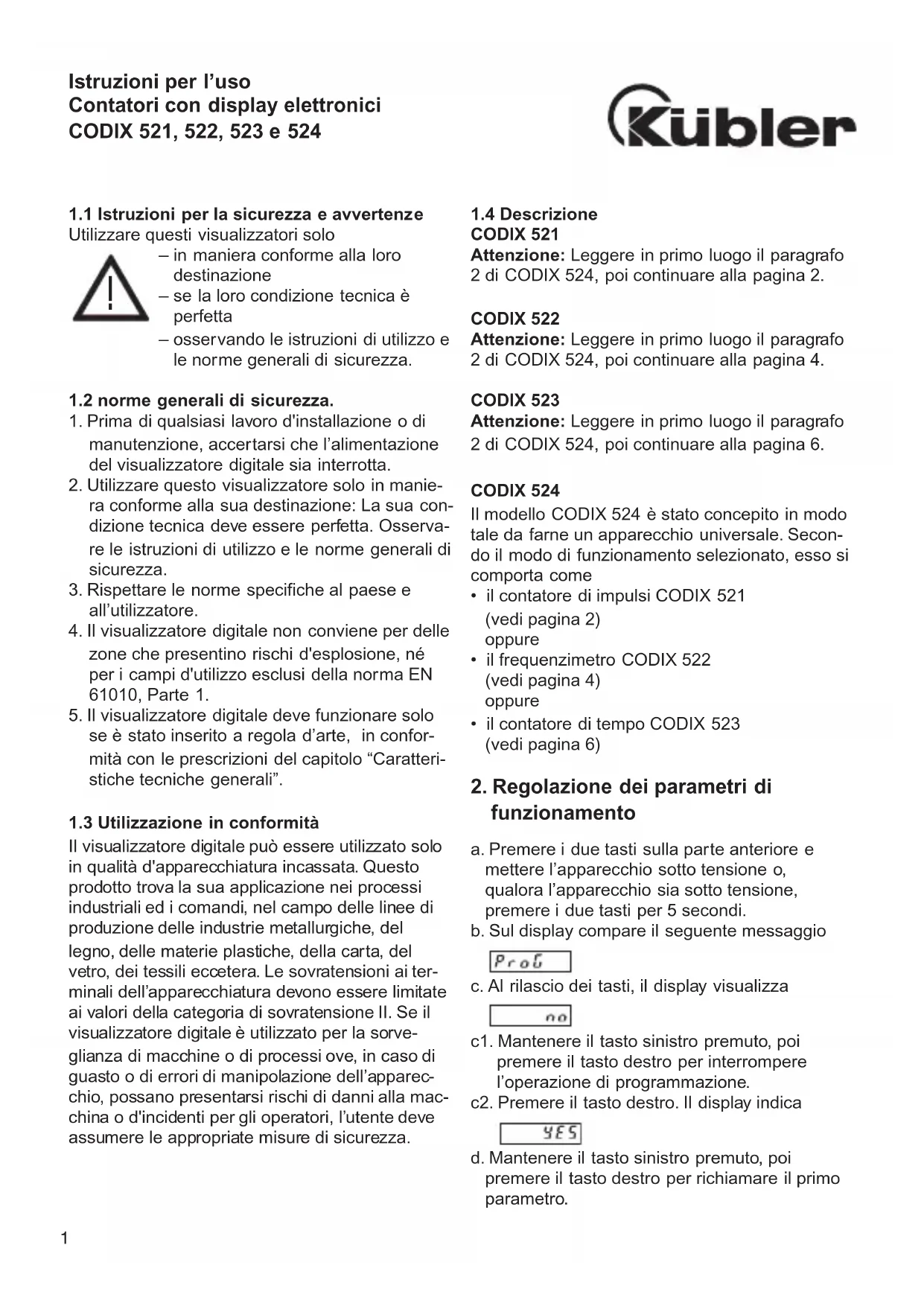 MANUALE UTENTE Codix 523 Kübler