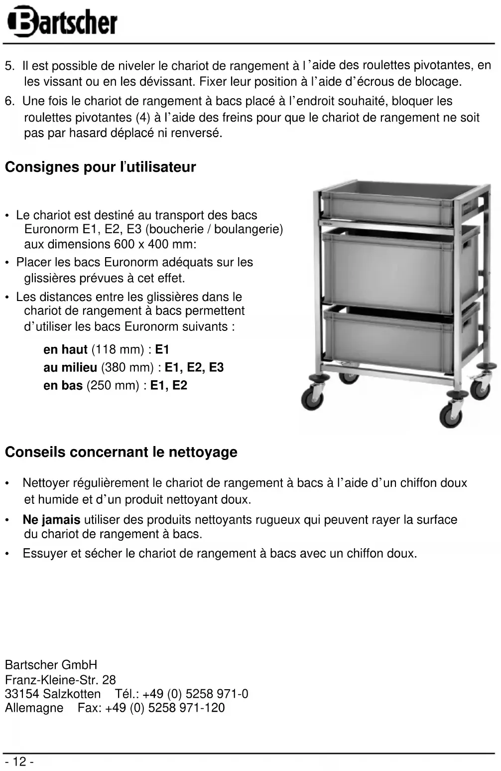 AK300 - Carrello a rotelle BARTSCHER - Manuale utente e istruzioni gratuiti
