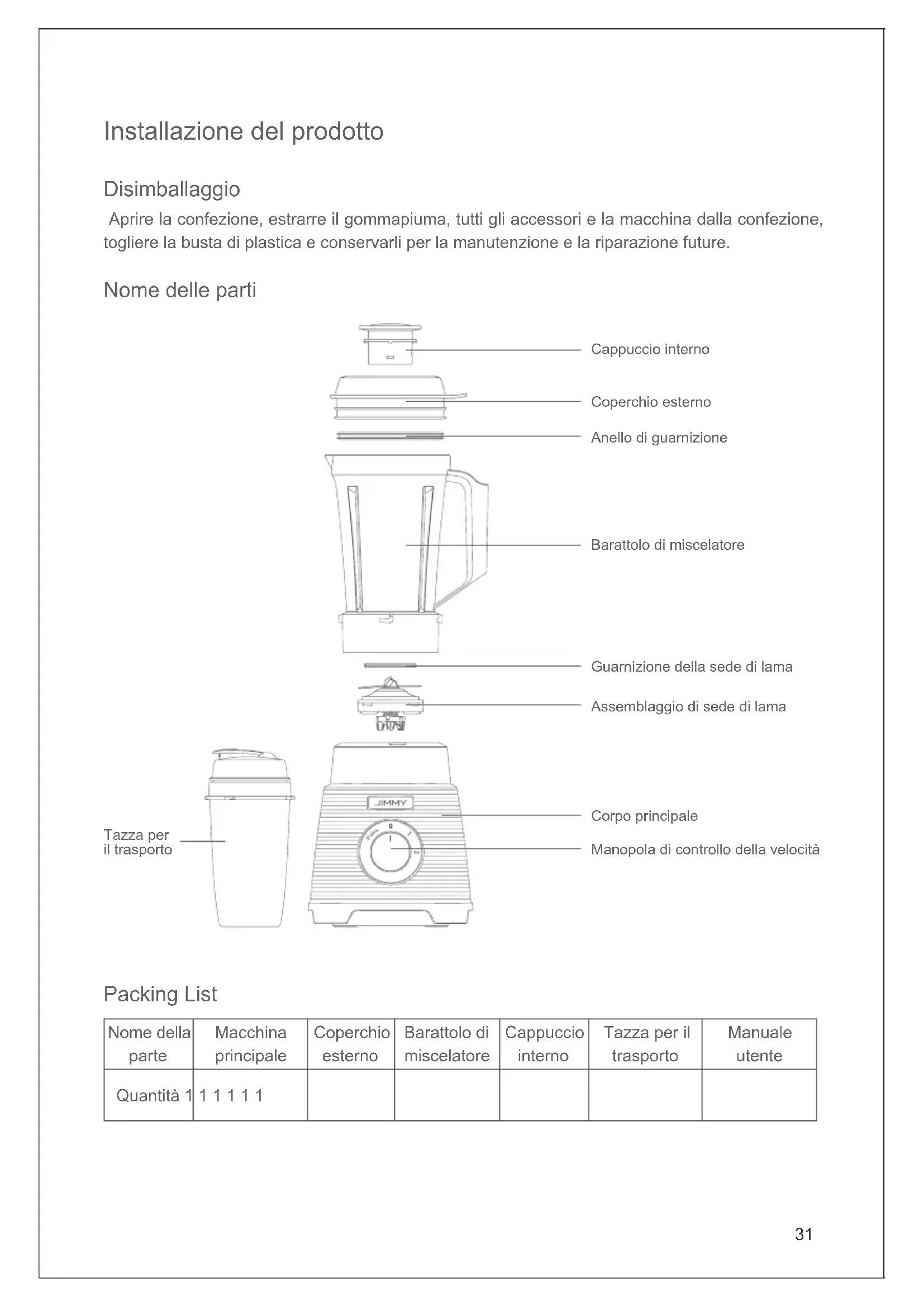 B32 - Frullatore JIMMY - Manuale utente e istruzioni gratuiti