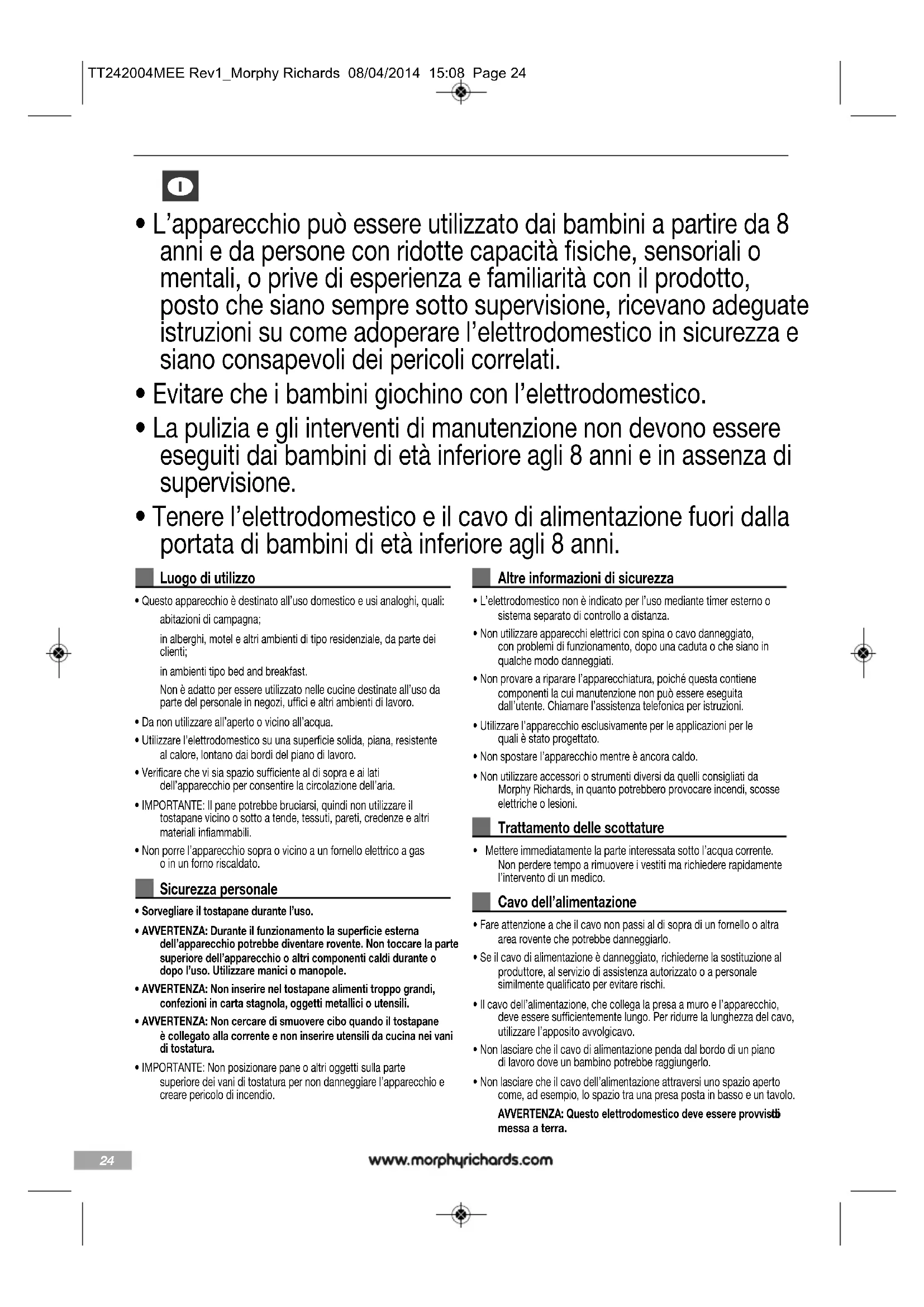 Scarica le istruzioni per il tuo Tostapane in formato PDF gratuitamente! Trova il tuo manuale Accents 242018 - MORPHY RICHARDS e riprendi in mano il tuo dispositivo elettronico. In questa pagina sono pubblicati tutti i documenti necessari per l'utilizzo del tuo dispositivo. Accents 242018 del marchio MORPHY RICHARDS.