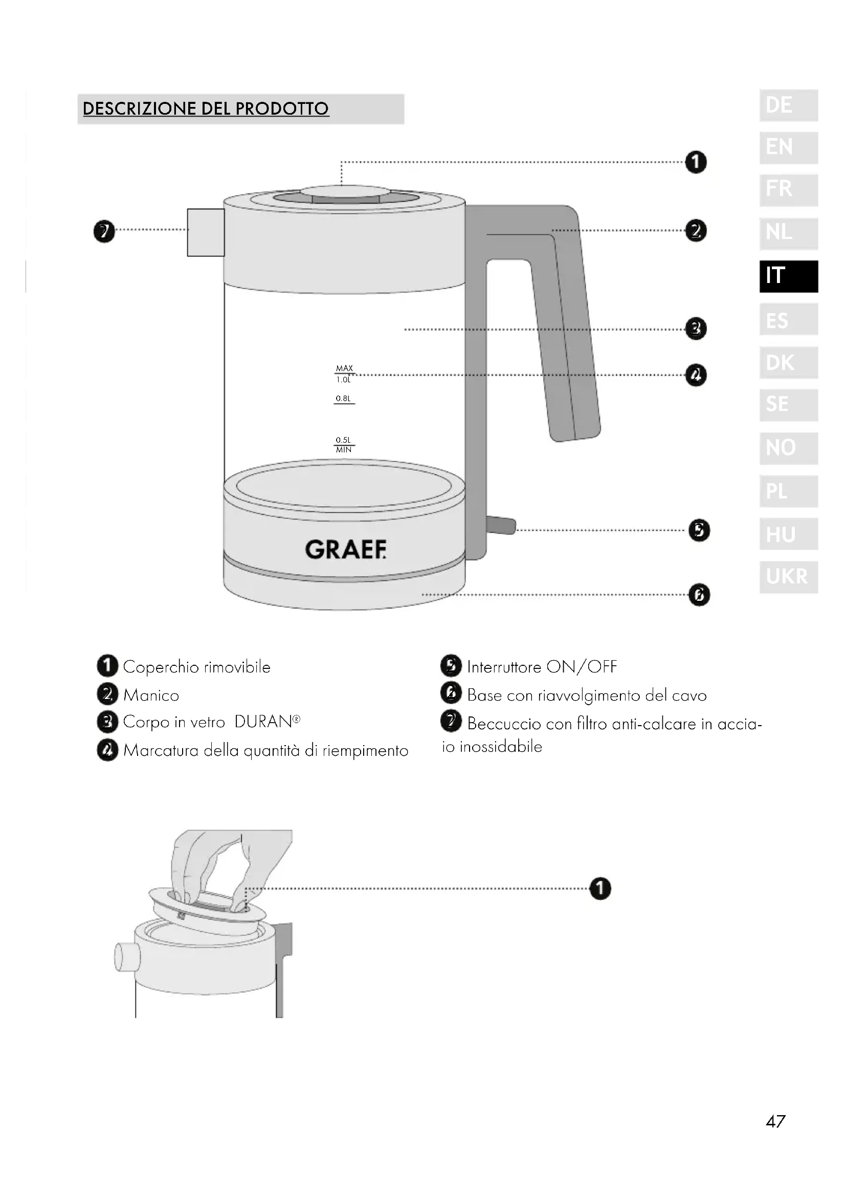 WK300 - Bollitore GRAEF - Manuale utente e istruzioni gratuiti