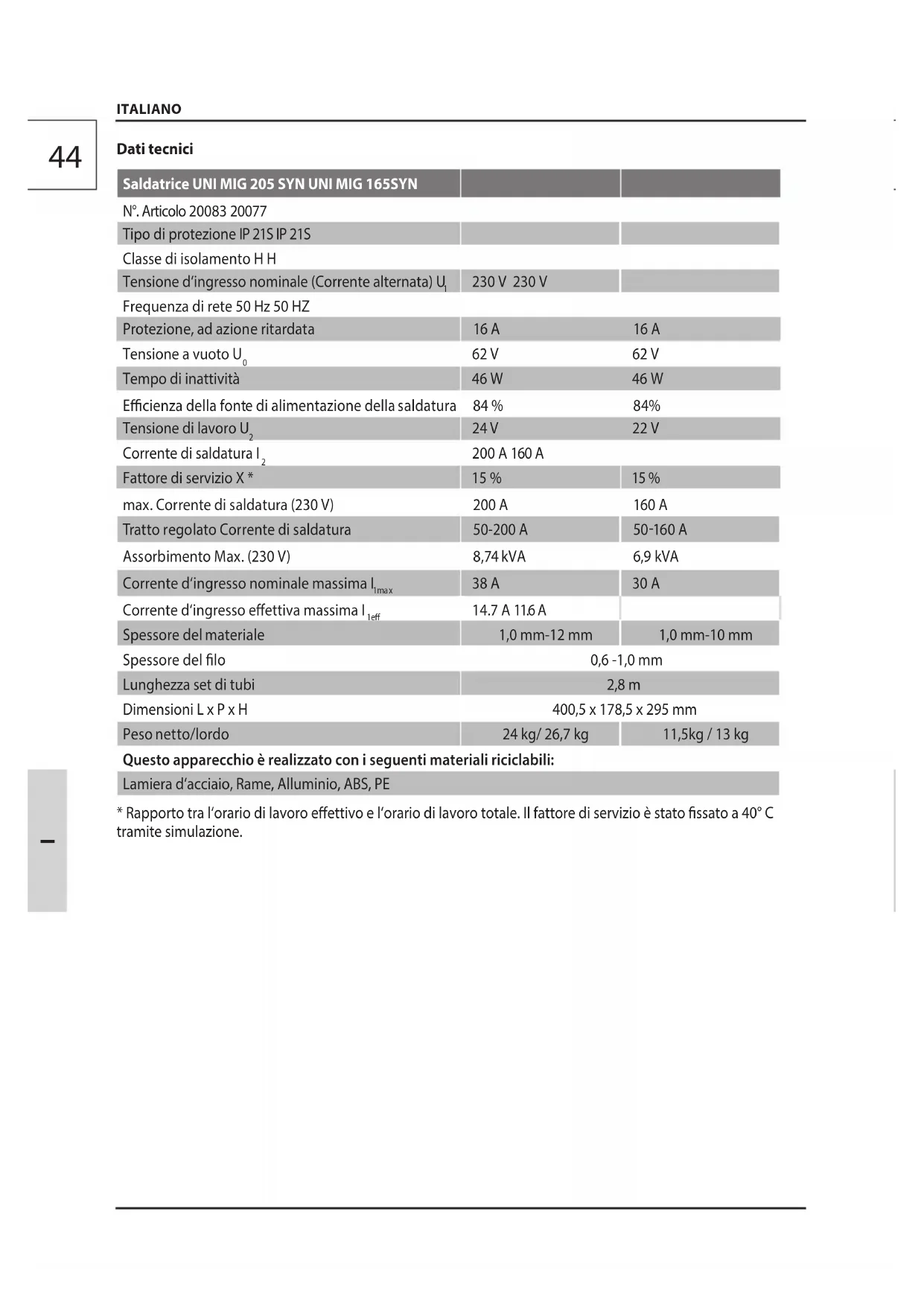 | Saldatrice UNI MIG 205 SYN UNI MIG 165SYN | ||