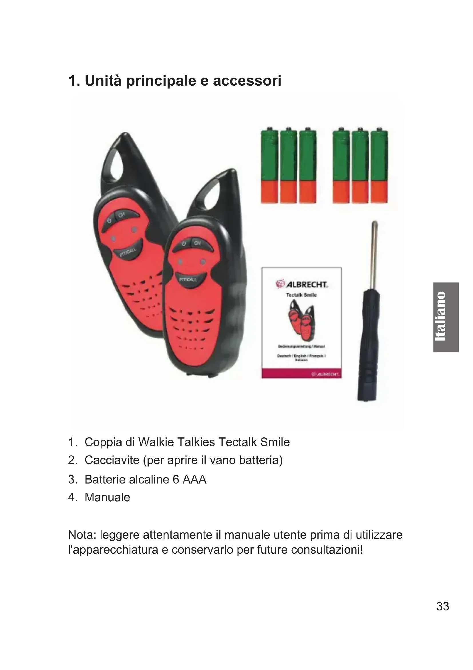 1. Unità principale e accessori