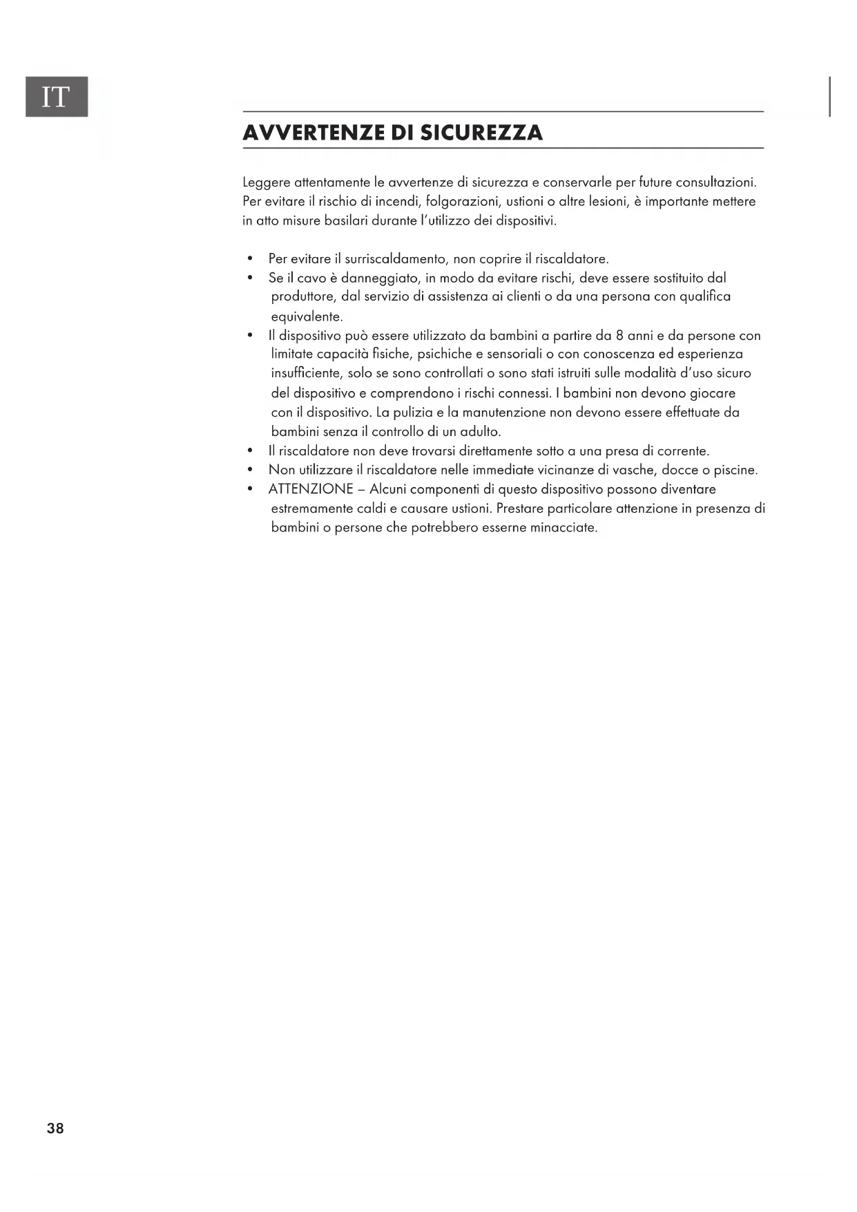 - ATTENZIONE – Alcuni componenti di questo dispositivo possono diventare estremamente caldi e causare ustioni. Prestare particolare attenzione in presenza di bambini o persone che potrebbero esserne minacciate.39