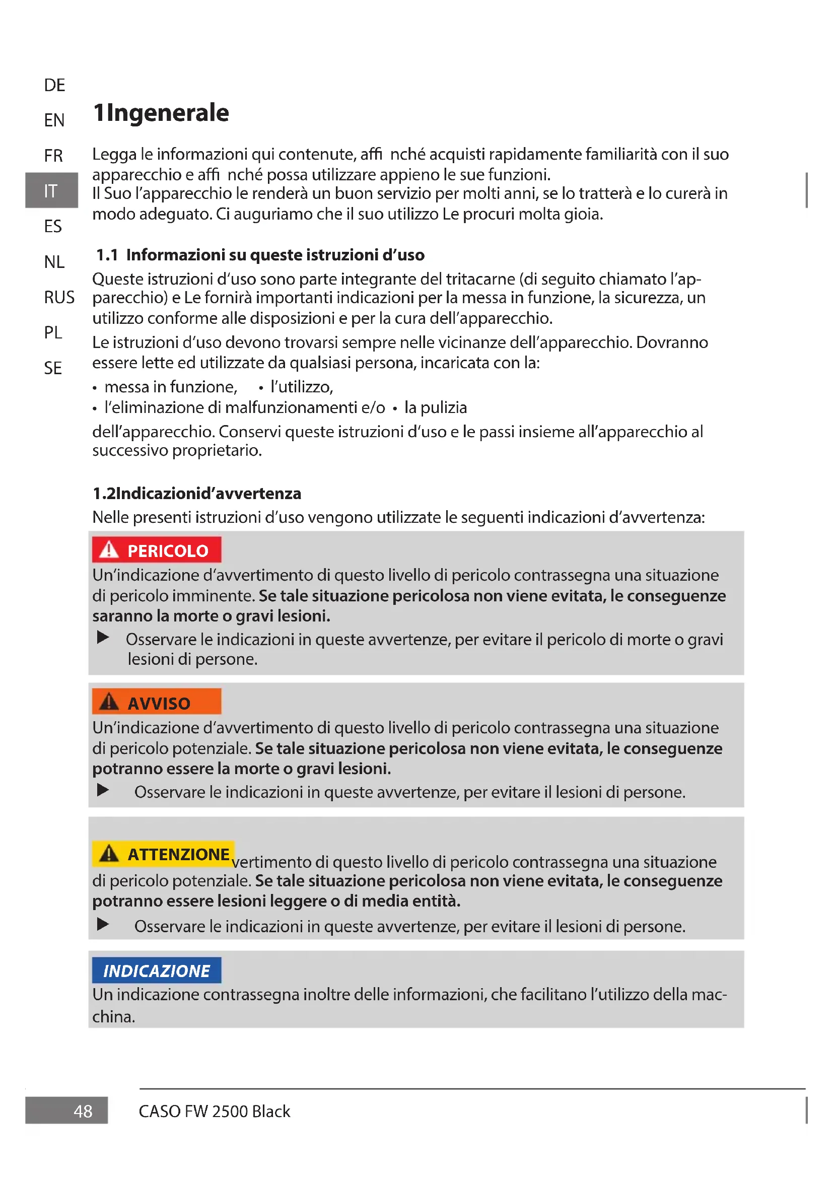 1.2 Indicazioni d’avvertenza