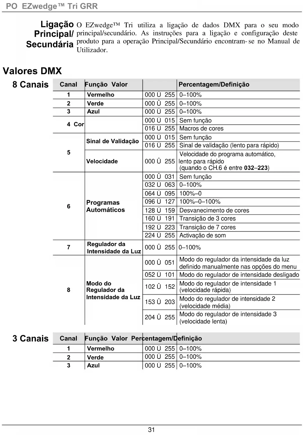 In modalità Master/Slave, EZwedge™ Tri utilizza il collegamento dati DMX. Le istruzioni per il collegamento e la configurazione di questa unità per il funzionamento Master/Slave sono contenute nel Manuale Utente.IT EZwedge™ Tri GR