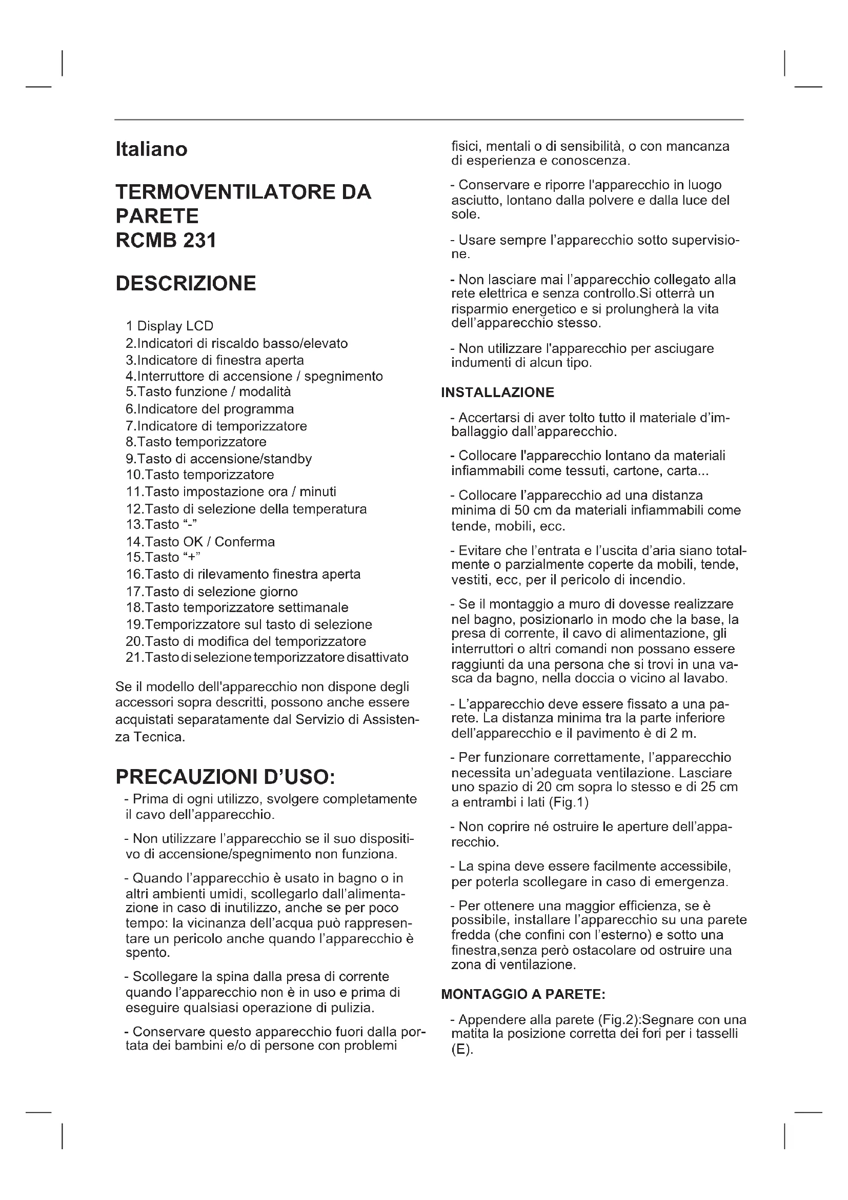 RCMB231 - Riscaldamento TAURUS - Manuale utente e istruzioni gratuiti