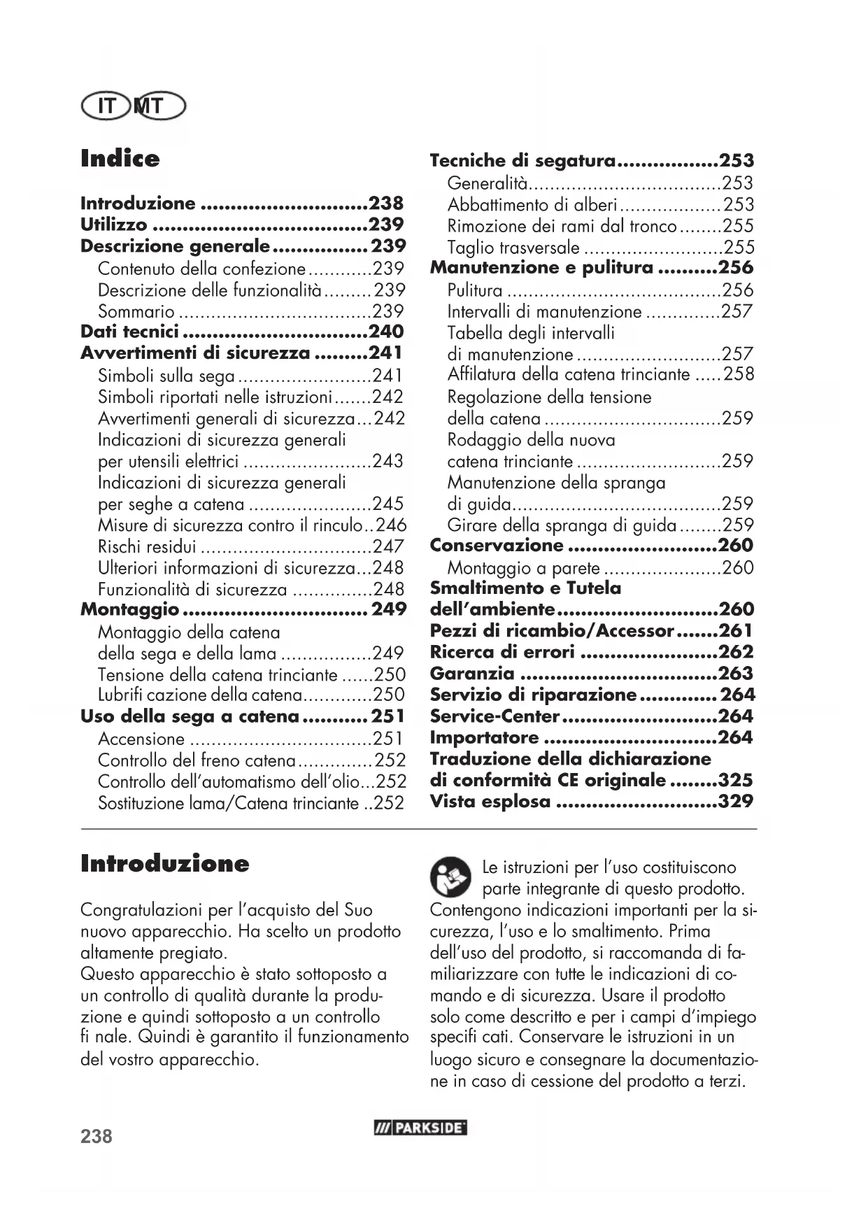 L'apparecchiatura è prevista per l'uso da adulti. Adolescenti di un'età di 16 anni o superiore devono usare la sega a catena solo quello sorvegianza. Il costruttore non risponde dei danni provocati da un uso non conforme alle disposizioni o non corretto.