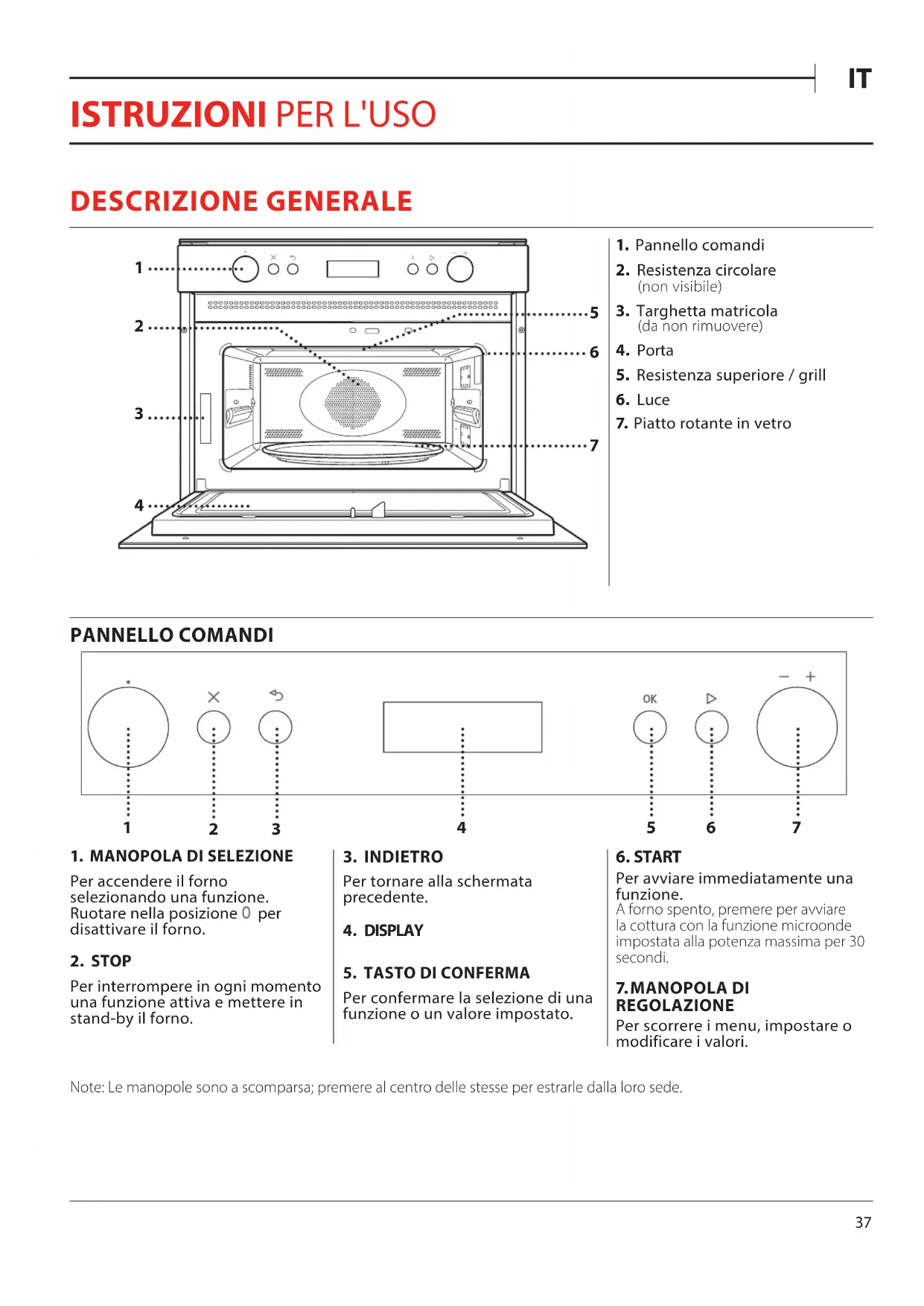 Note: Le manopole sono a scomparsa; premere al centro delle stesse per estrarle dalla loro sede.38 ACCESSORI