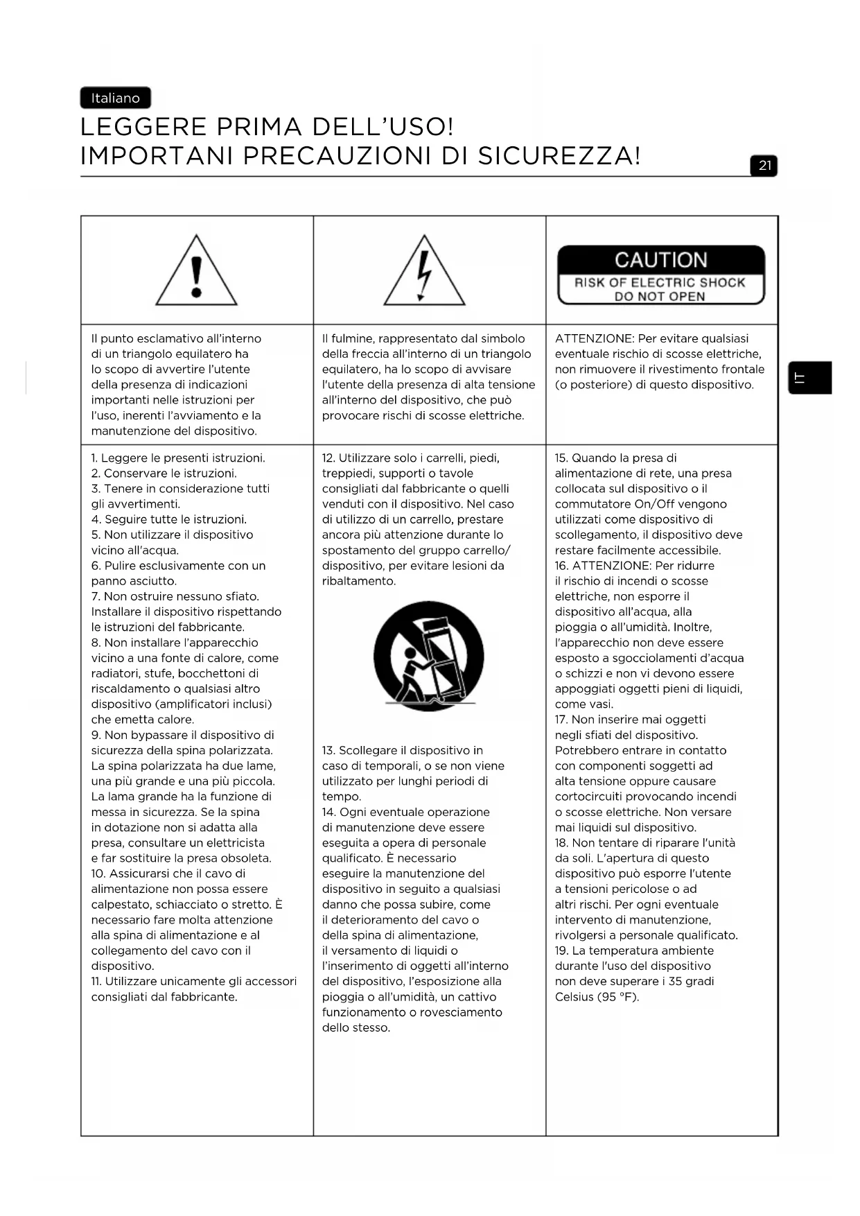 21. Non utilizzare il dispositivo