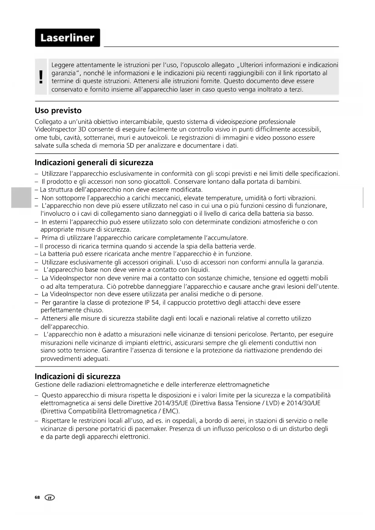 MANUALE UTENTE VideoInspector 3D Laserliner