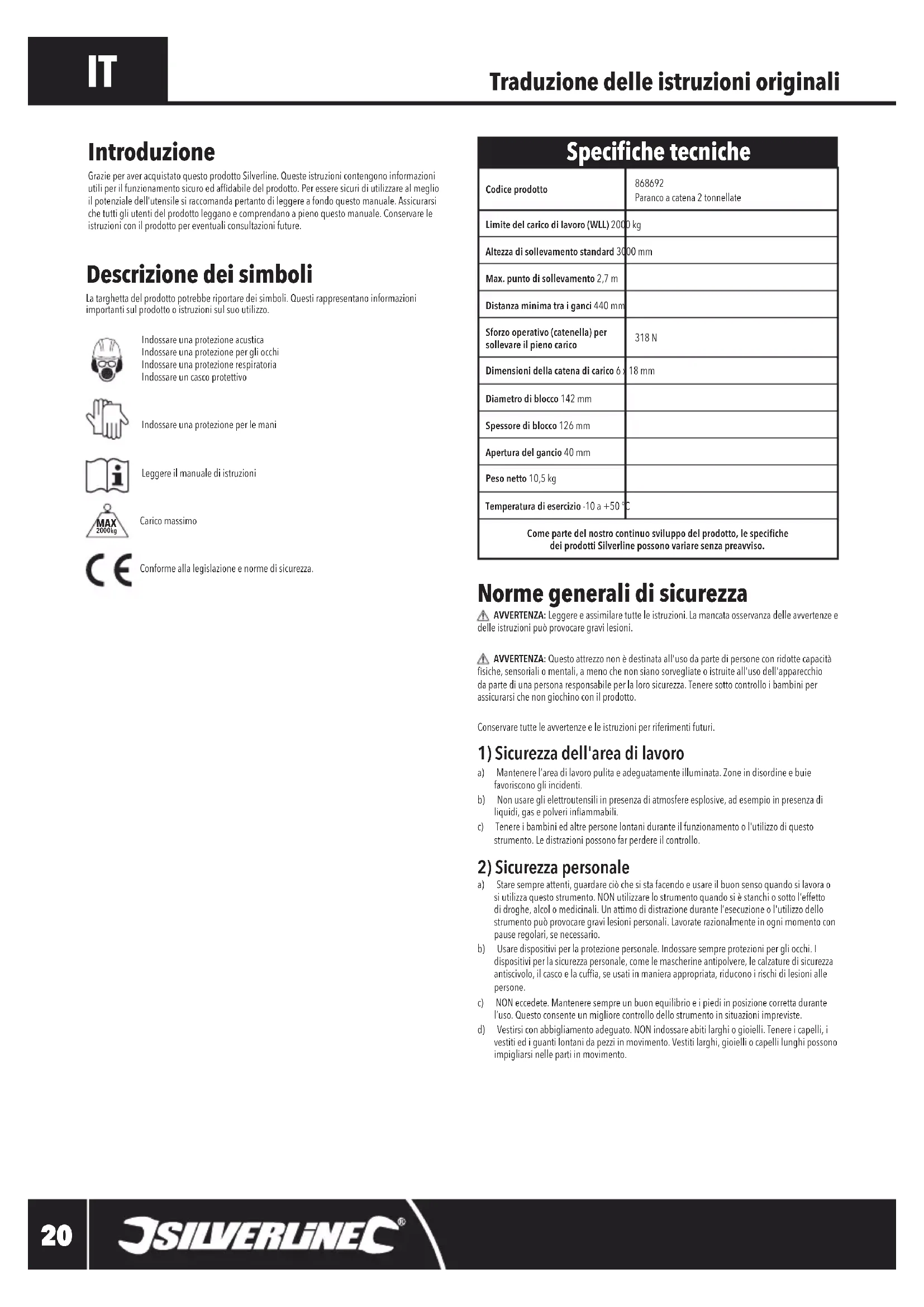 868692 - Paranco SILVERLINE - Manuale utente e istruzioni gratuiti