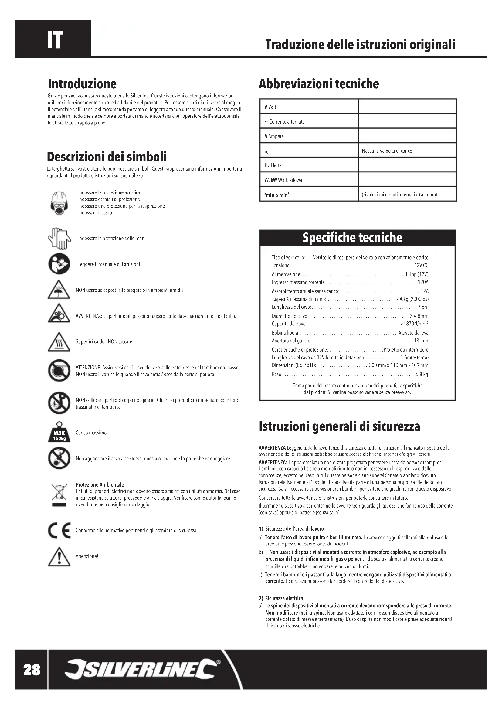 Scarica le istruzioni per il tuo Verricello elettrico in formato PDF gratuitamente! Trova il tuo manuale 748850 - SILVERLINE e riprendi in mano il tuo dispositivo elettronico. In questa pagina sono pubblicati tutti i documenti necessari per l'utilizzo del tuo dispositivo. 748850 del marchio SILVERLINE.
