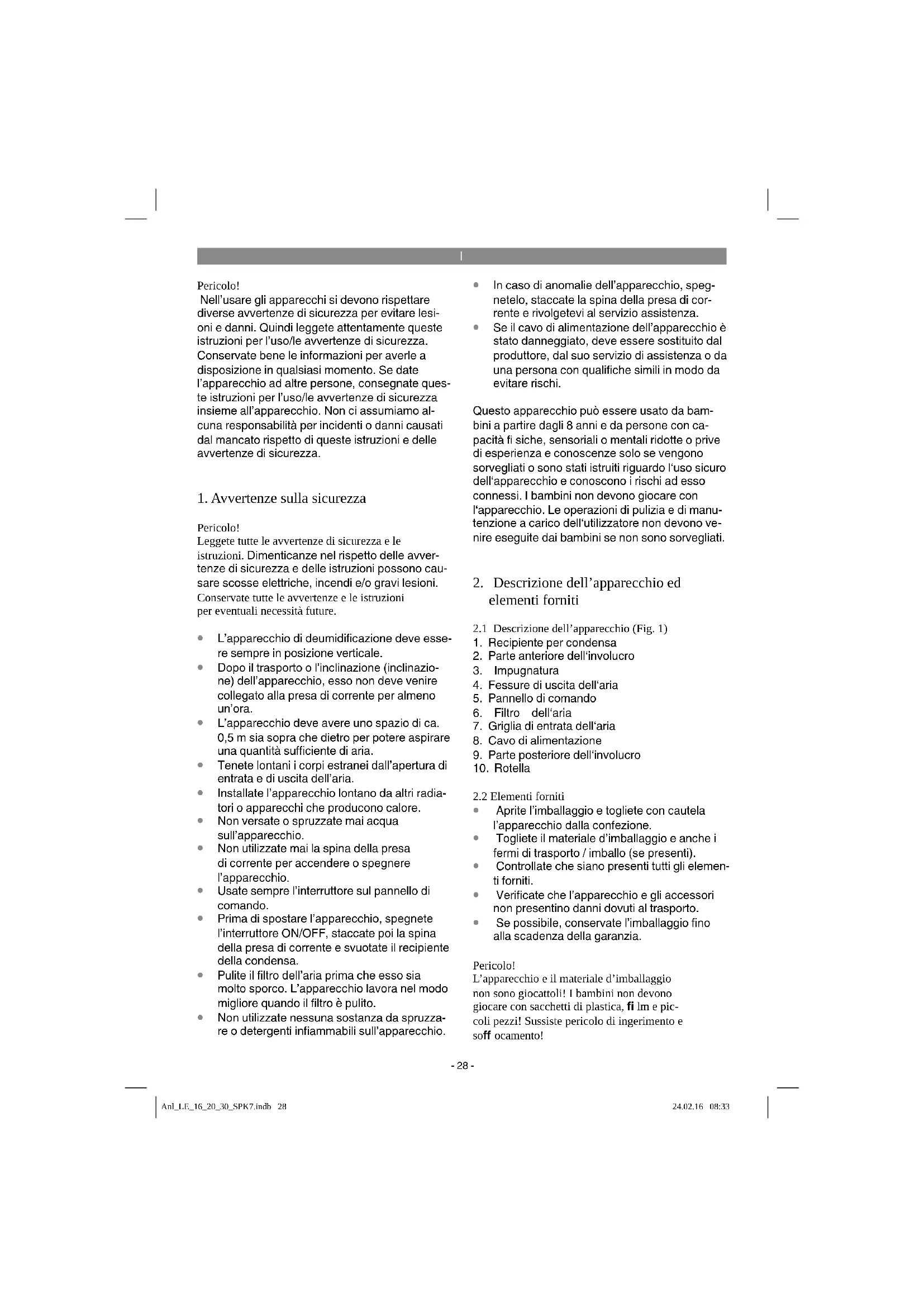Se possibile, conservate l’imballaggio fino alla scadenza della garanzia. Pericolo! L’apparecchio e il materiale d’imballaggio non sono giocattoli! I bambini non devono giocare con sacchetti di plastica, fi lm e pic- coli pezzi! Sussiste pericolo di ingerimento e soff ocamento! Anl_LE_16_20_30_SPK7.indb 28Anl_LE_16_20_30_SPK7.indb 28 24.02.16 08:3324.02.16 08:33I