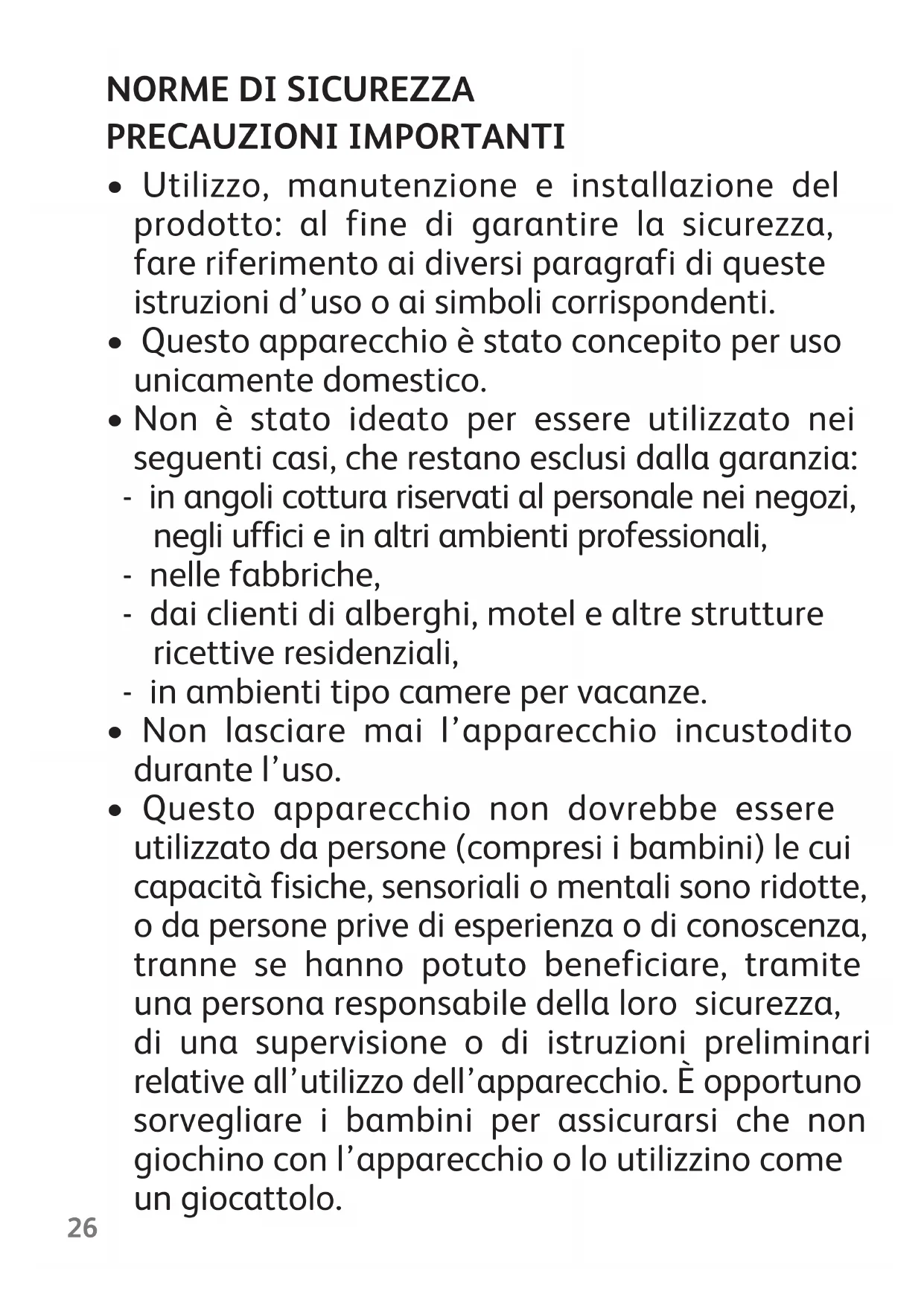 - Questo apparecchio è stato concepito per uso unicamente domestico.