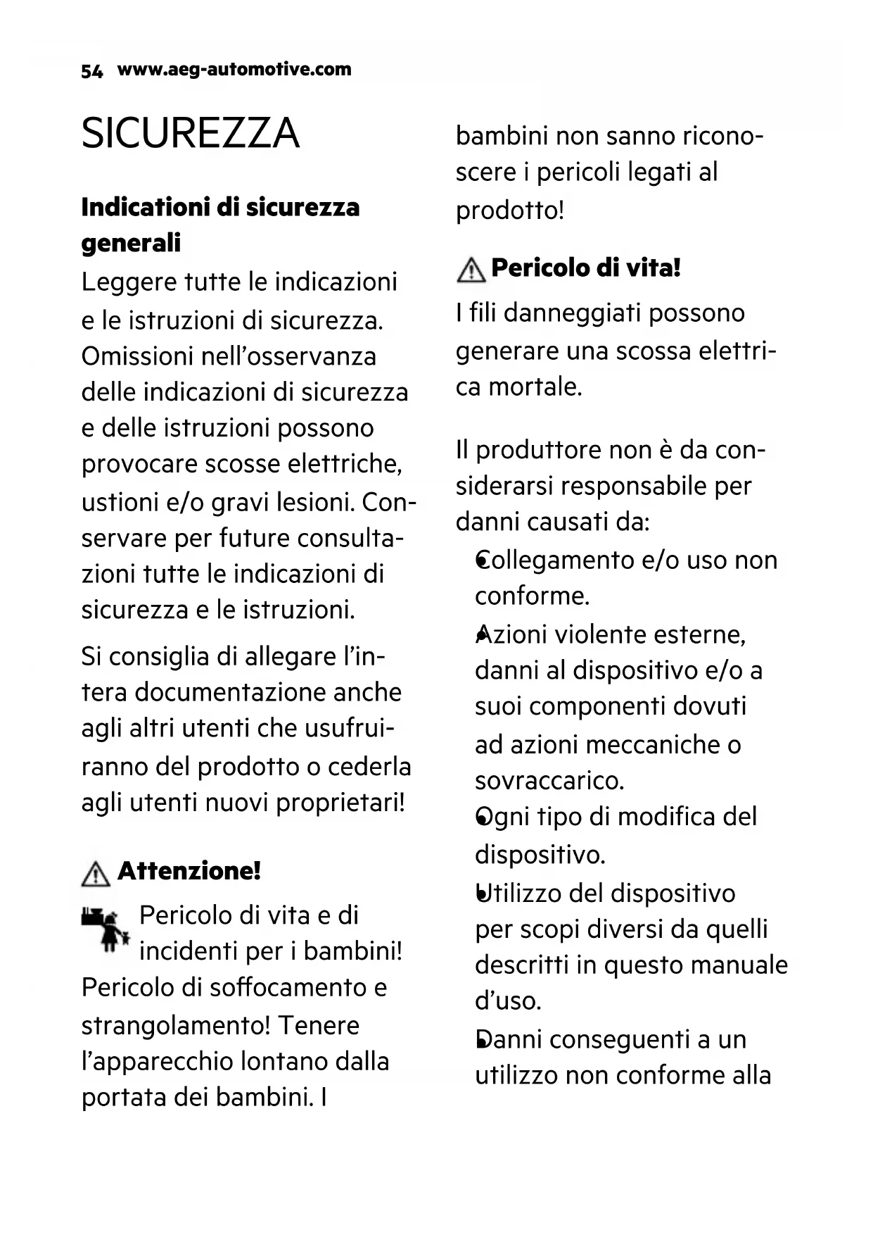 Istruzioni per l’uso Consegnare la documentazione com- pleta agli altri utenti!www.aeg-automotive.com