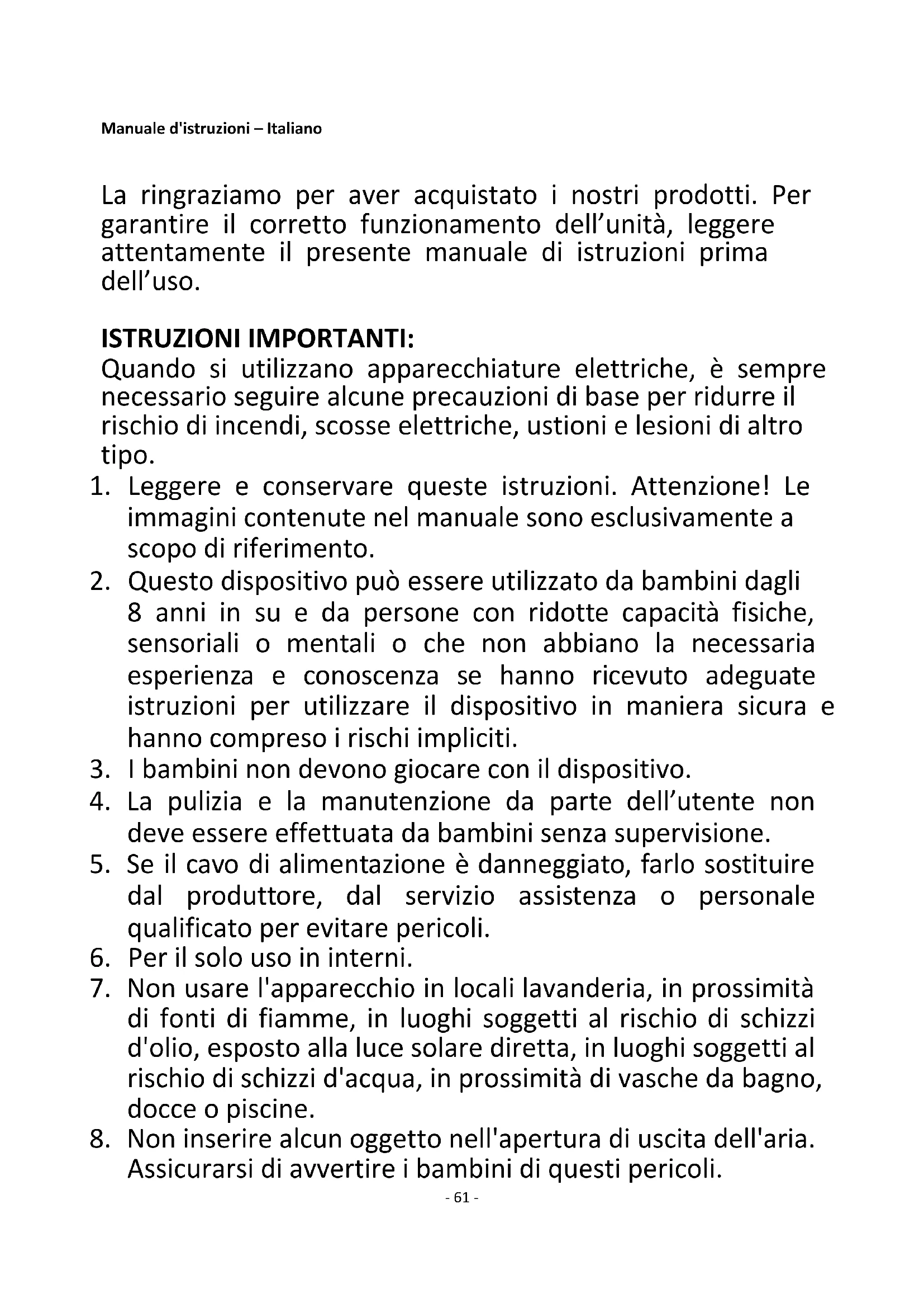 1. Leggere e conservare queste istruzioni. Attenzione! Le