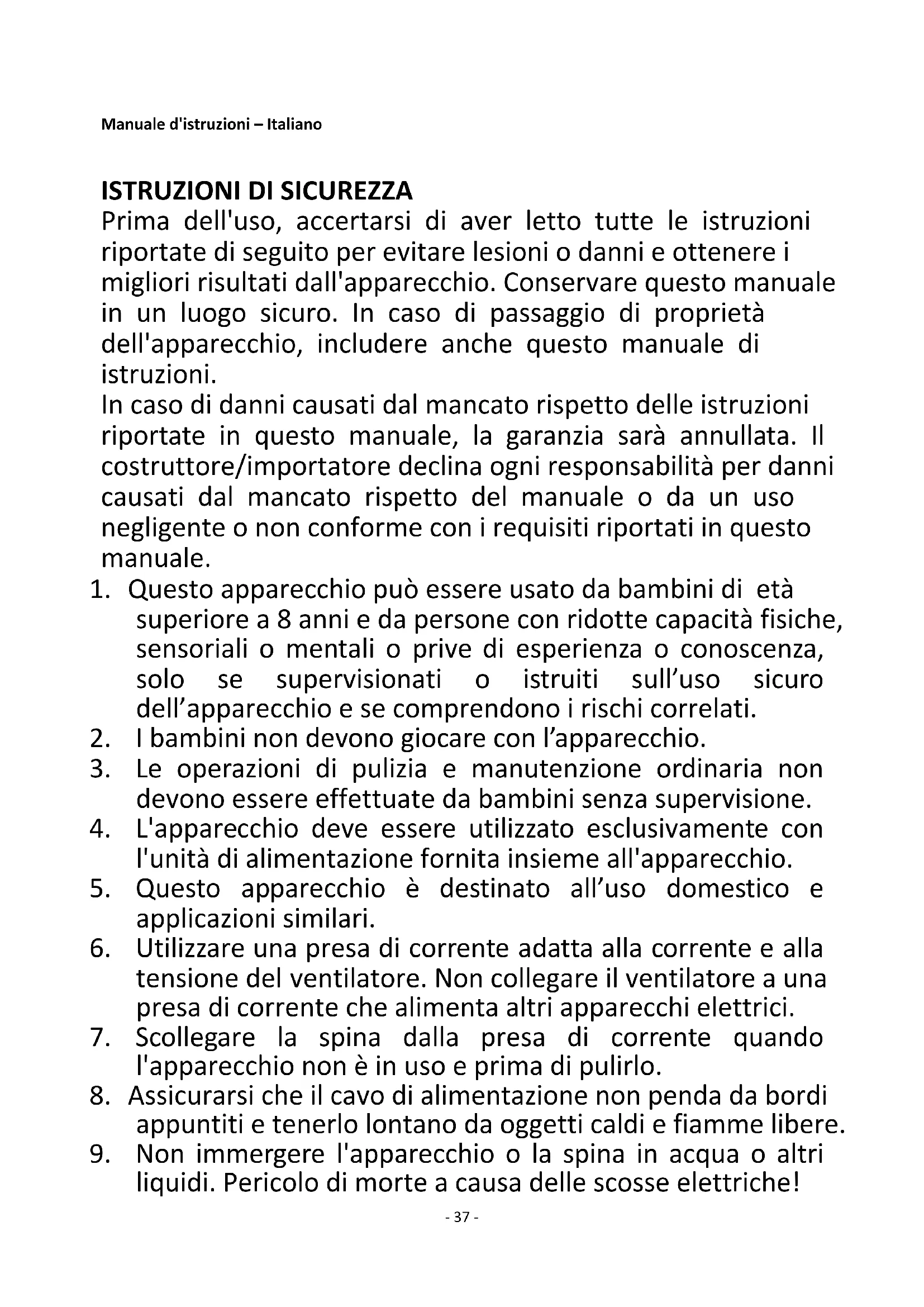 20. Per motivi di sicurezza, non immergere il ventilatore, il