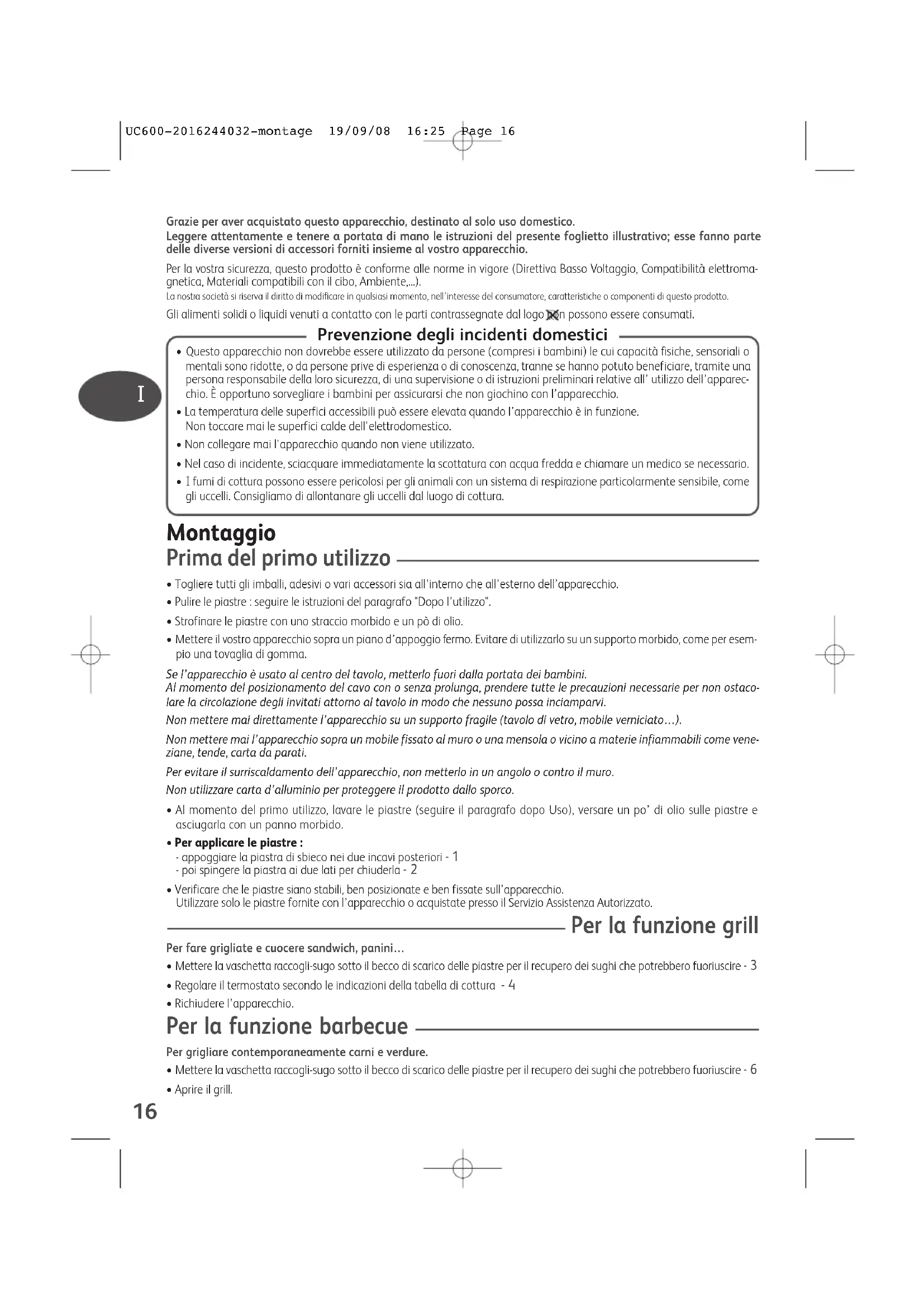 UC600-2016244032-montage 19/09/08 16:25 Page 1516 Montaggio Prima del primo utilizzo