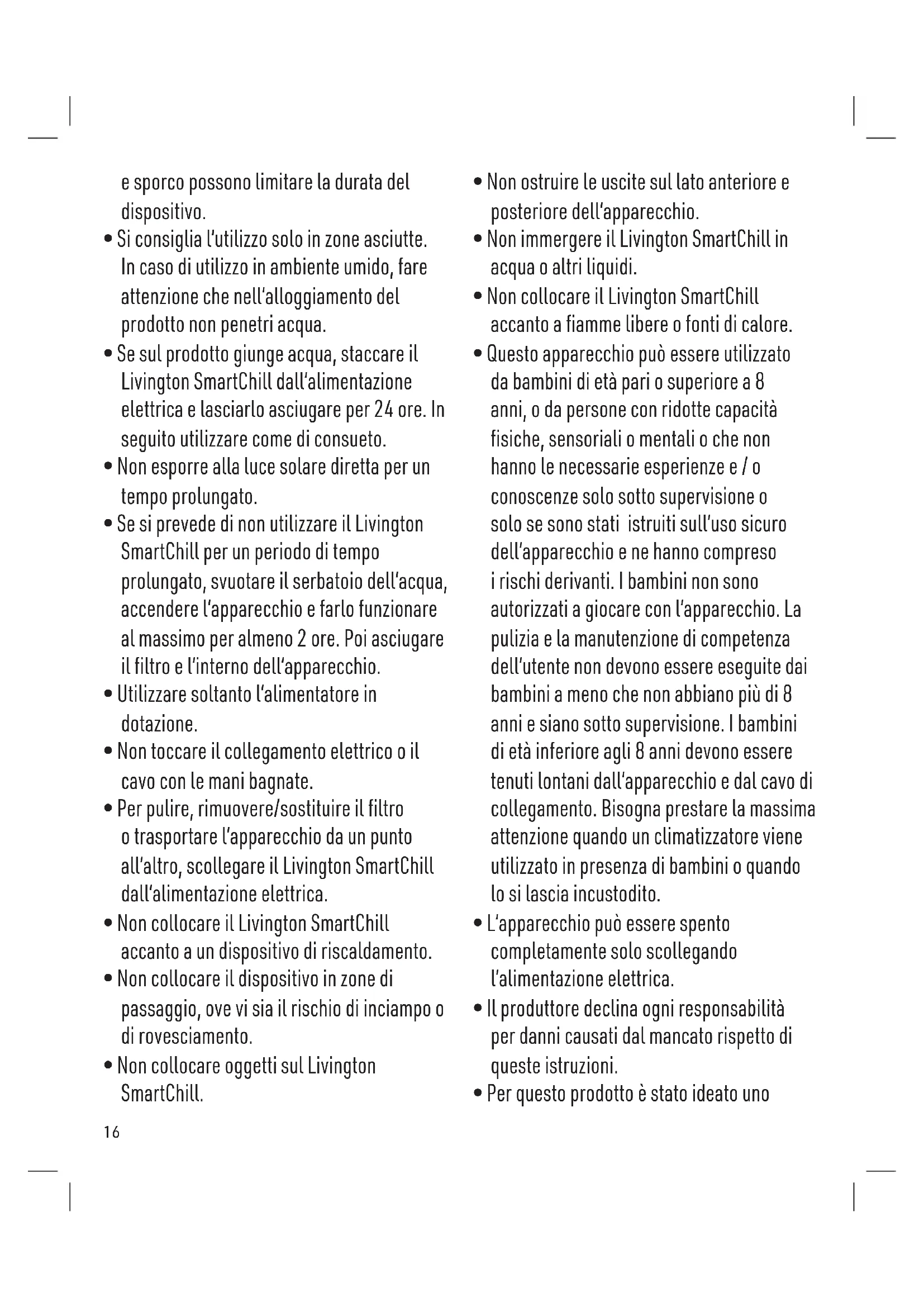 - Il Livington SmartChill funziona al meglio in zone pulite. Particelle grossolane di polvere16 e sporco possono limitare la durata del dispositivo.