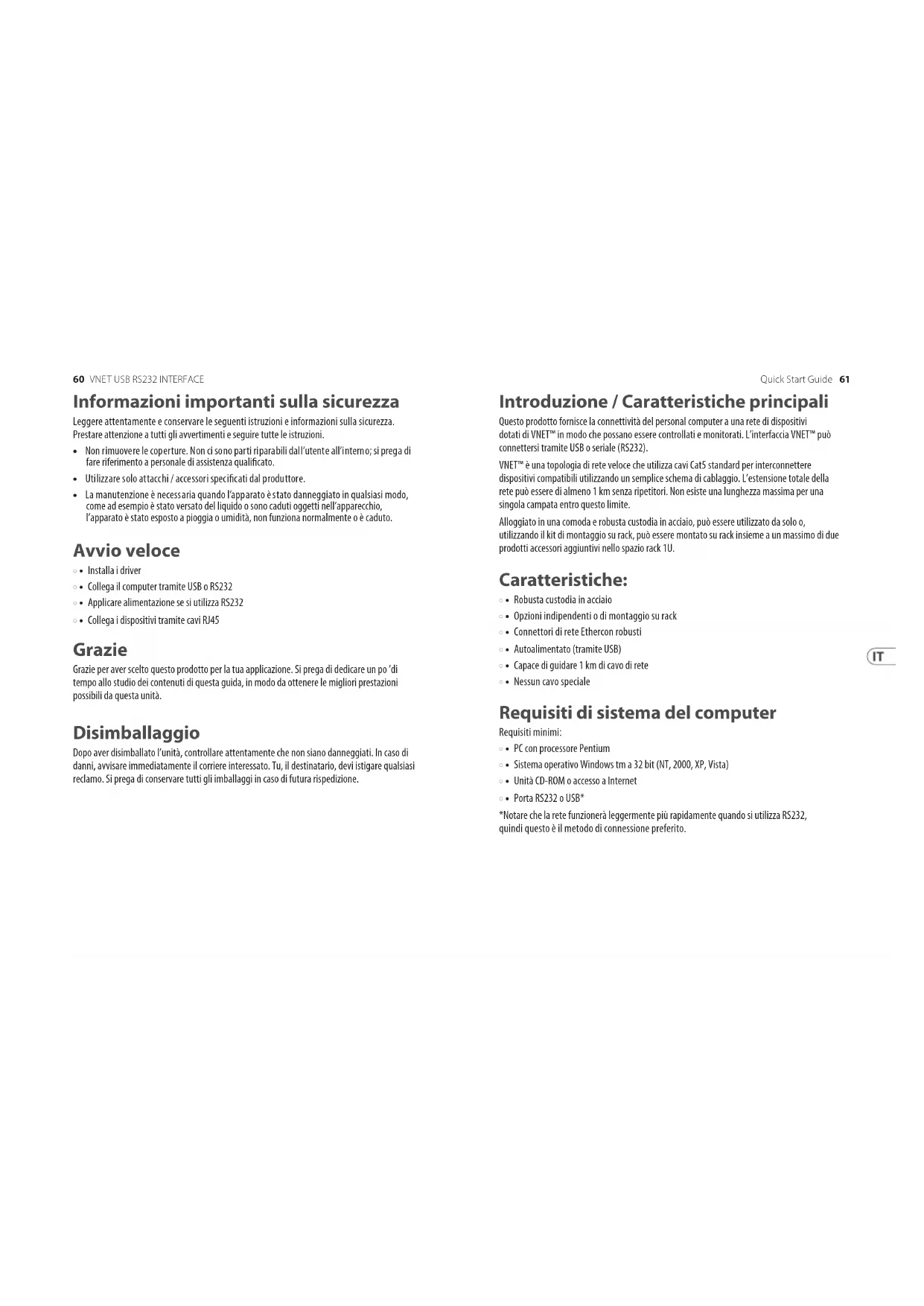 essere collegato a una presa14 15Quick Start GuideVNET USB RS232 INTERFACE riciclaggio vi invitiamo a contattare l'ucio comunale locale o il servizio di raccolta dei riuti domestici.