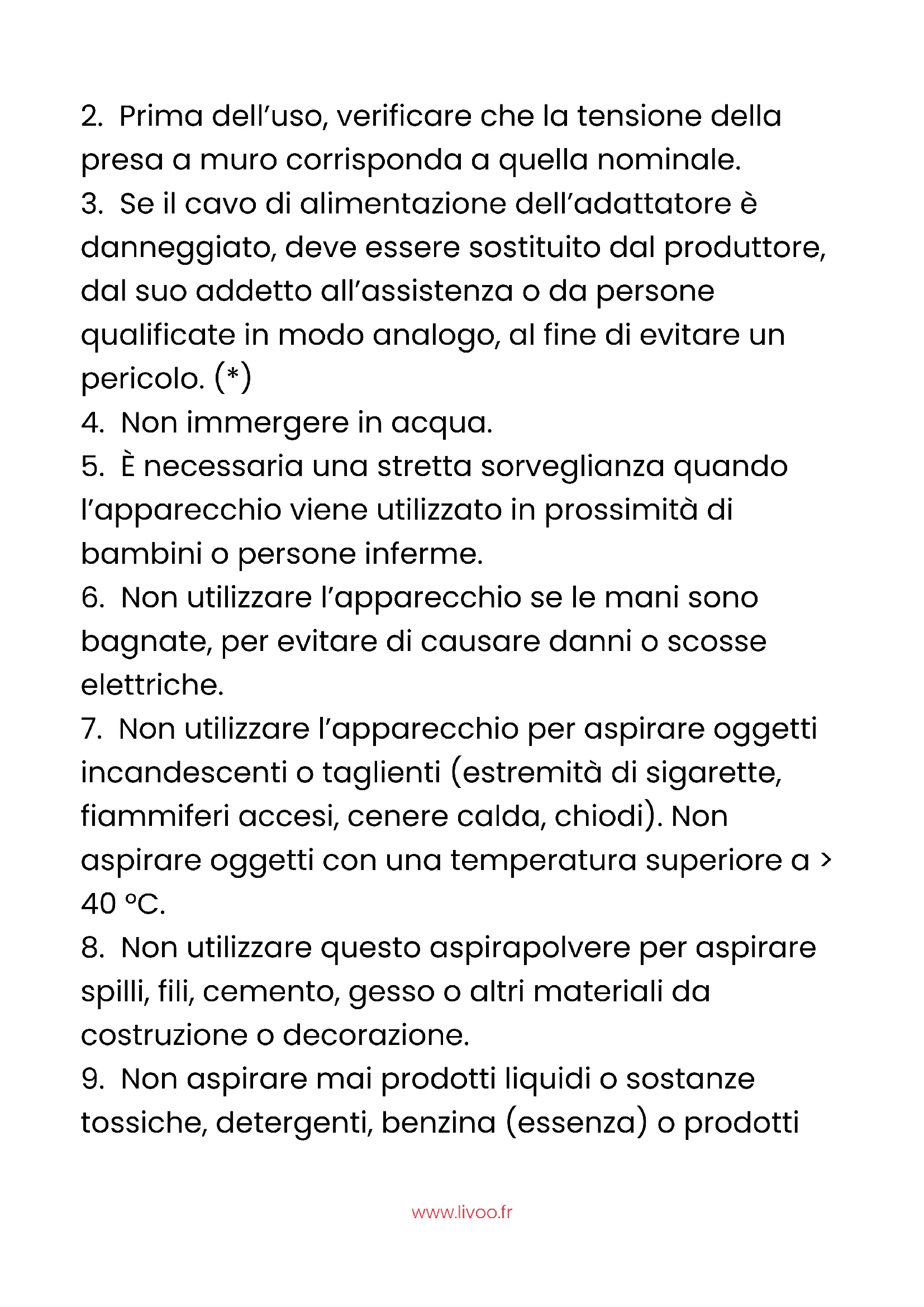 all’uso domestico per l’aspirazione a secco. L’uso commerciale e industriale può causare danni e invalidare la garanzia. @livoo_officiel
