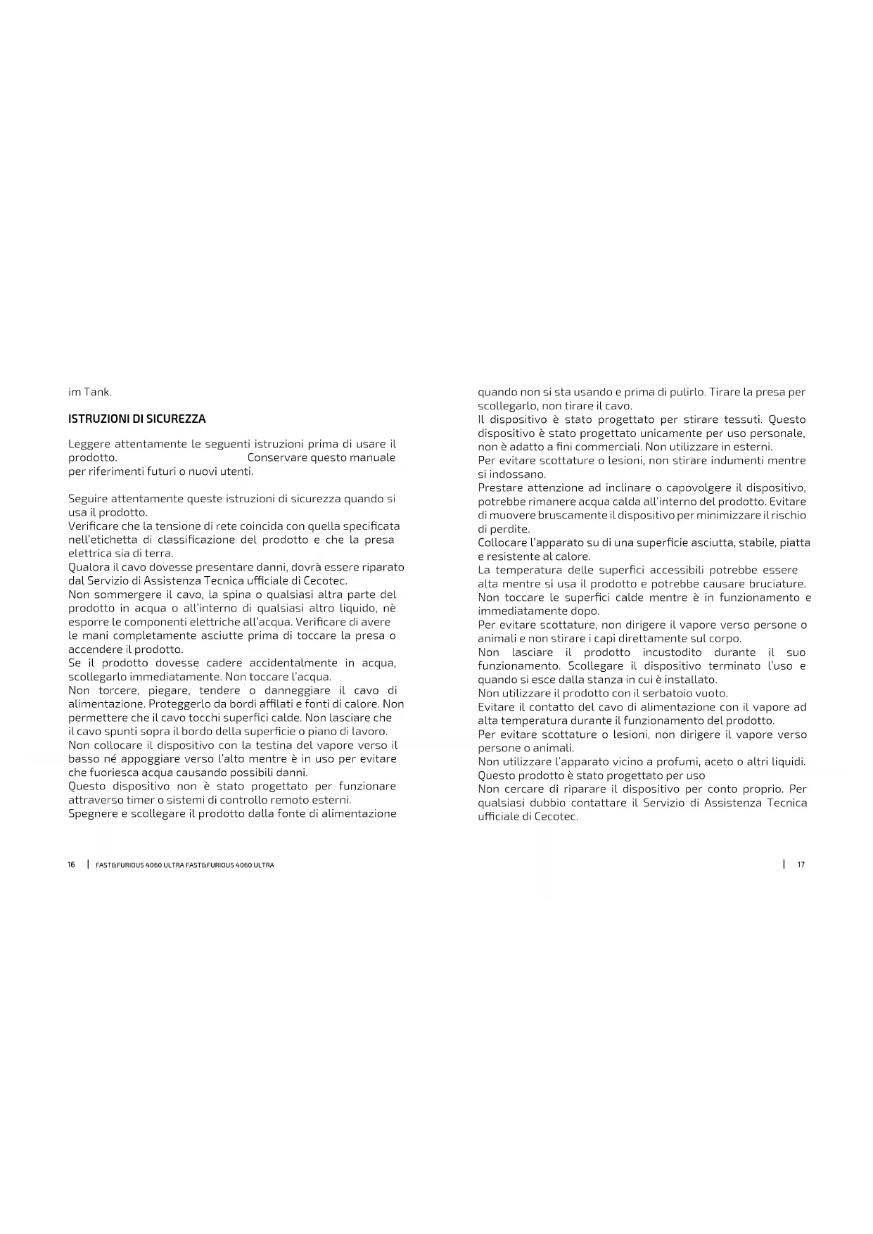MANUALE UTENTE Fast&Furious 4060 Ultra CECOTEC