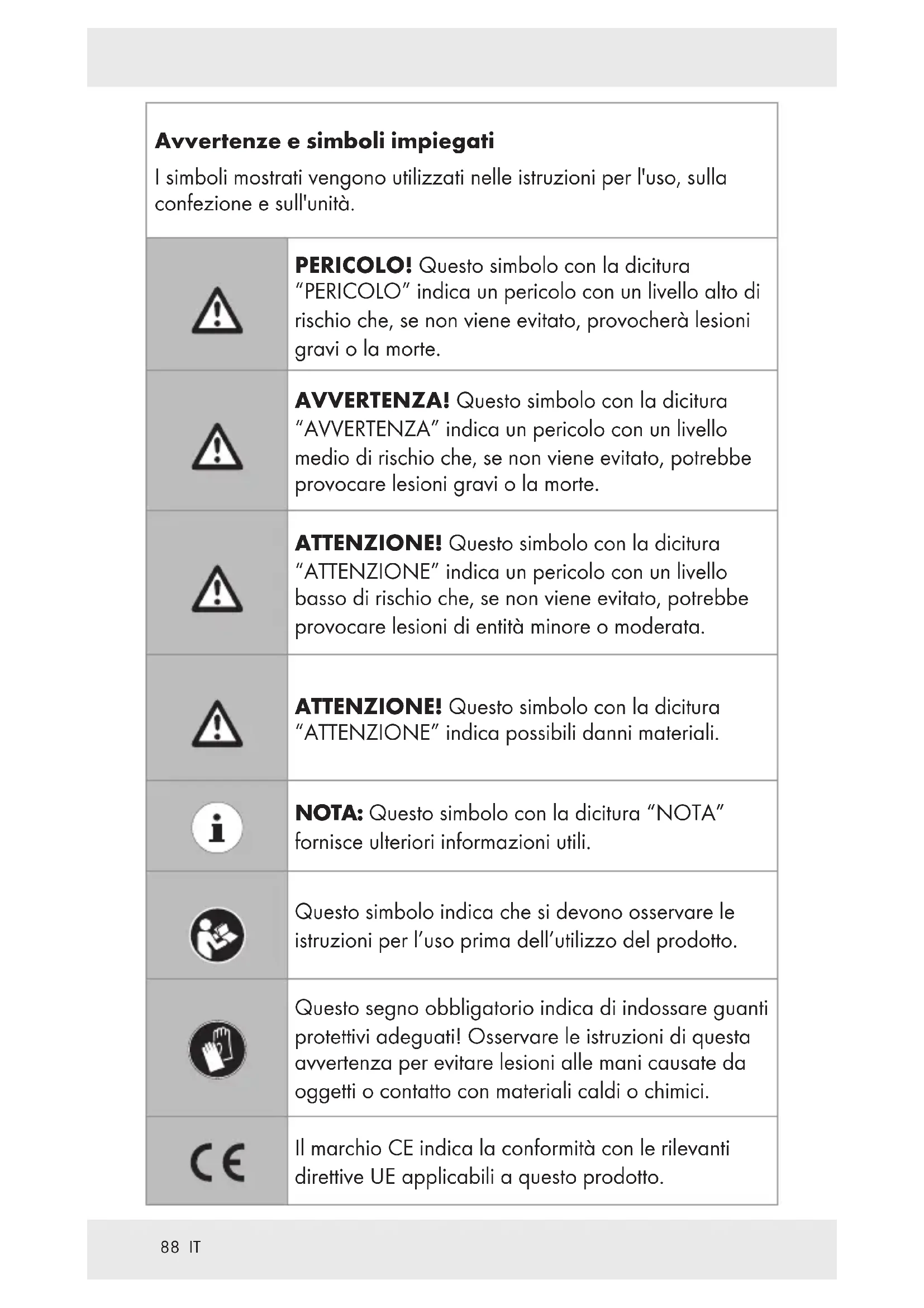 Indicazioni per l’uso e per la sicurezza Pagina 87