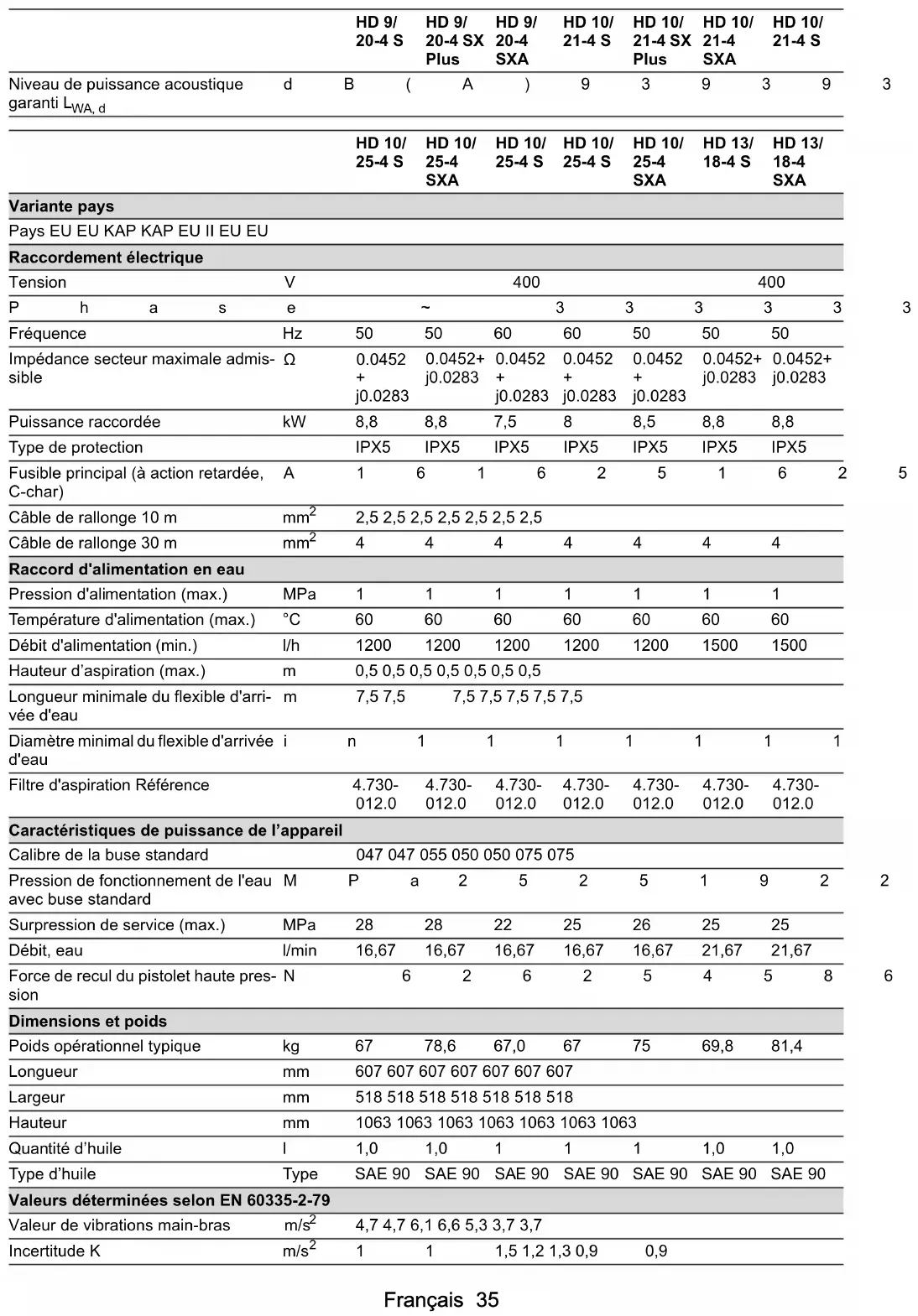 - dB(A)91919191919191 Niveau de puissance acoustique garanti L WA, d dB(A)93939393939393 HD 10/ 25-4 S HD 10/ 25-4 SXA HD 10/ 25-4 S HD 10/ 25-4 S HD 10/ 25-4 SXA HD 13/ 18-4 S HD 13/ 18-4 SXA Avvertenze generali p. 36