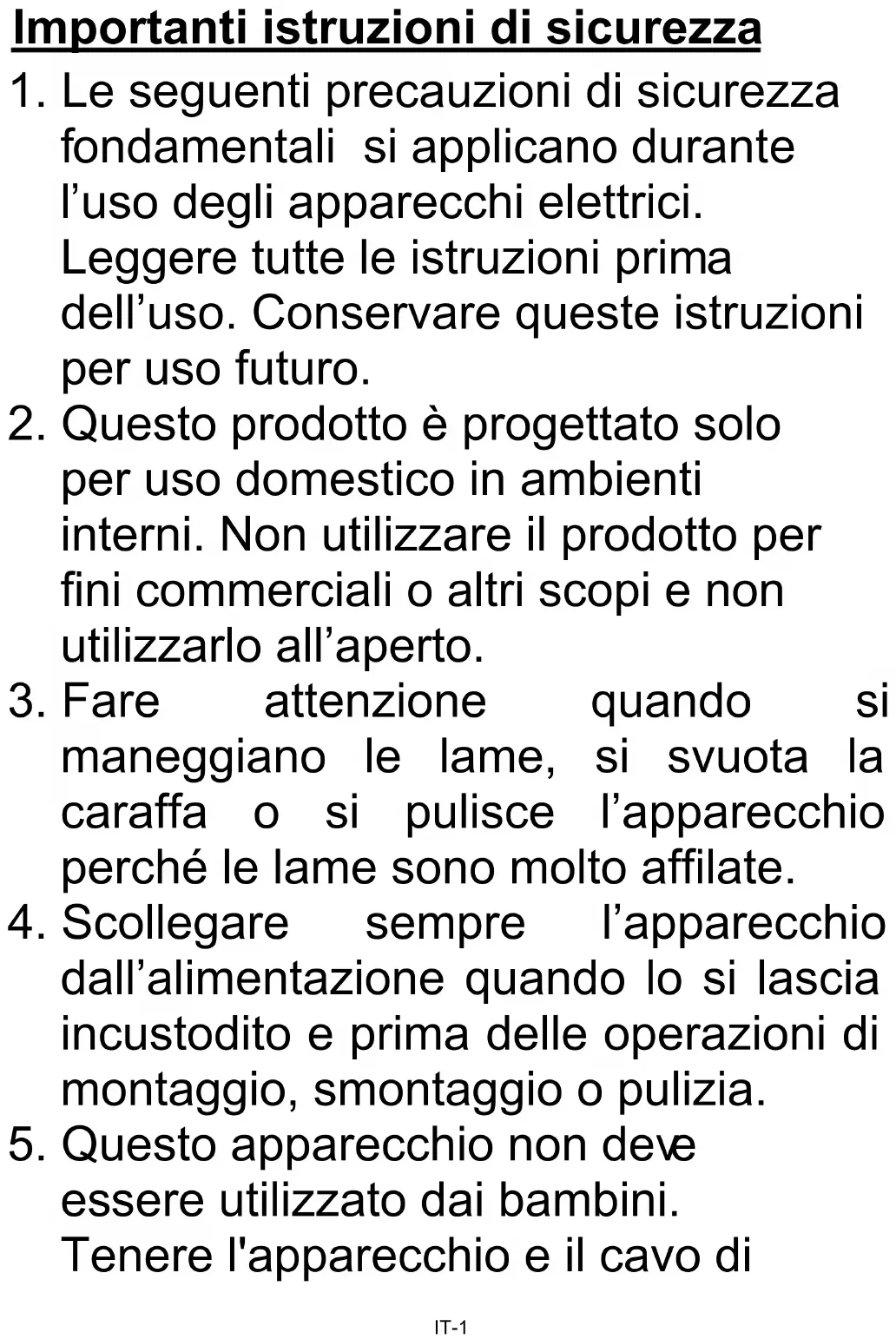 sere utilizzato dai bambini. Tenere l'apparecchio e il cavo diIT-2 alimentazione fuori dalla portata dei bambini.
