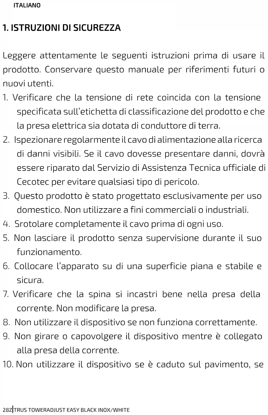 MANUALE UTENTE Zitrus TowerAdjust Easy CECOTEC