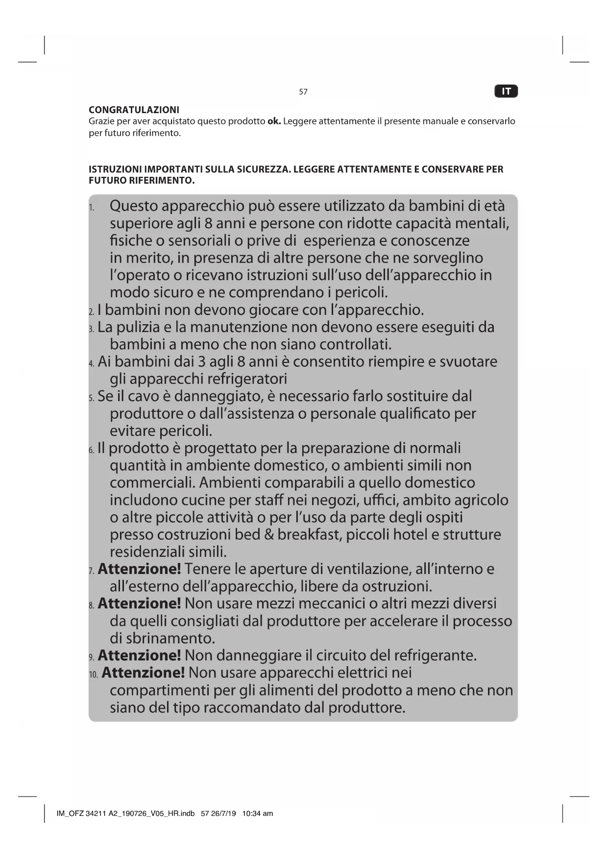 compartimenti per gli alimenti del prodotto a meno che non siano del tipo raccomandato dal produttore. IM_OFZ 34211 A2_190726_V05_HR.indb 57 26/7/19 10:34 am58