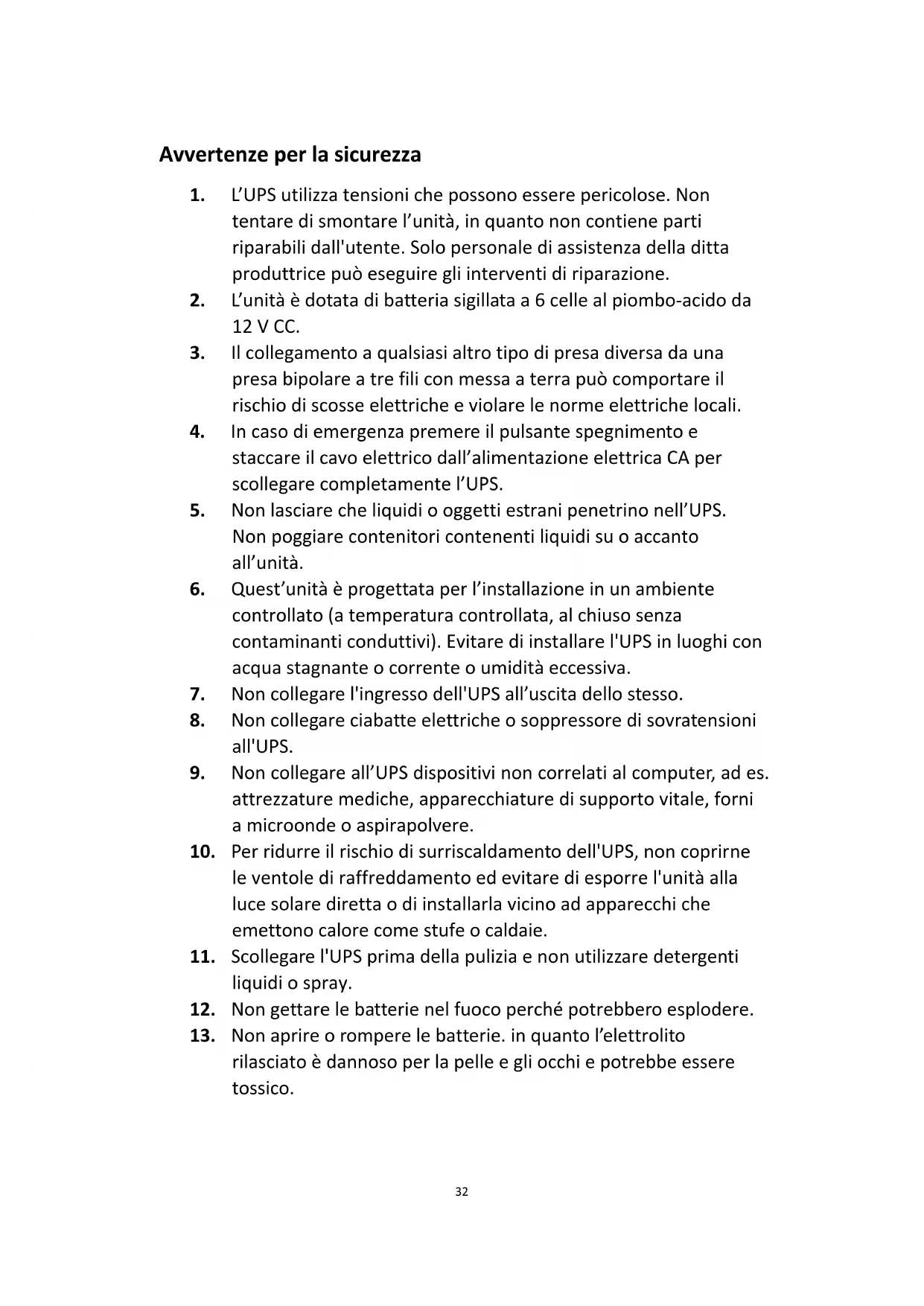 1. L’UPS utilizza tensioni che possono essere pericolose. Non