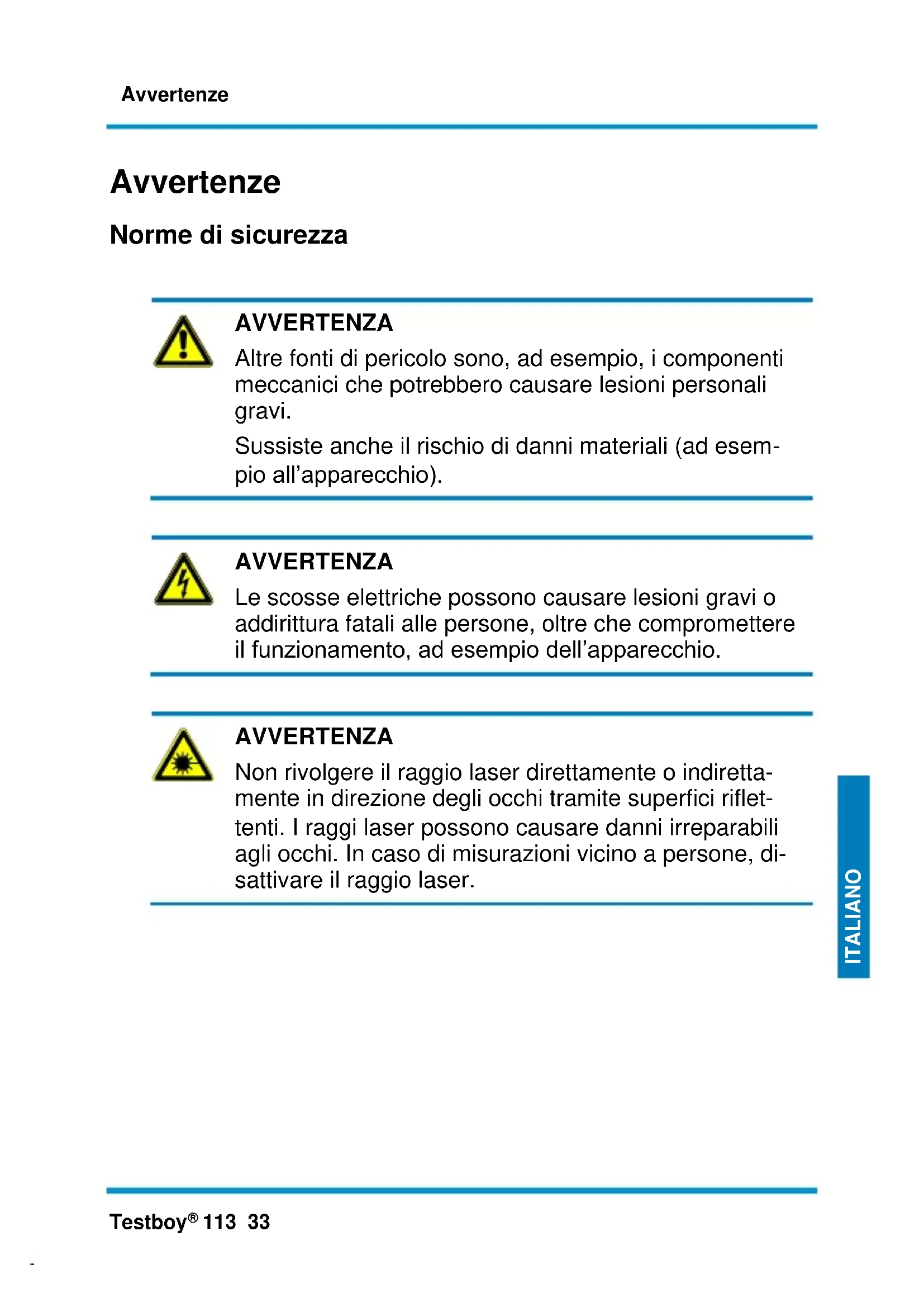 (DIN VDE 0411)Avvertenze Testboy