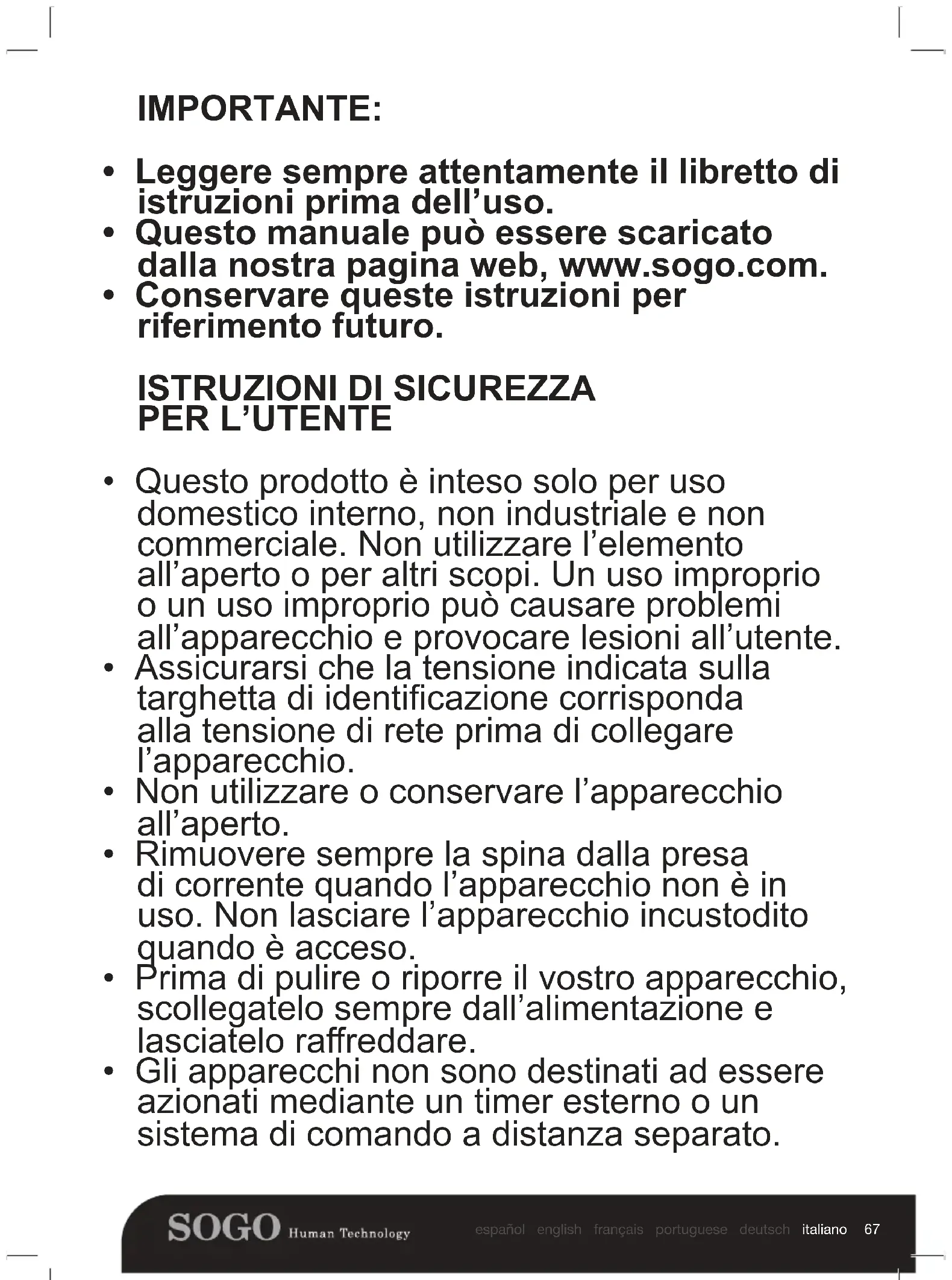 - Questo manuale può essere scaricato dalla nostra pagina web, www.sogo.com.