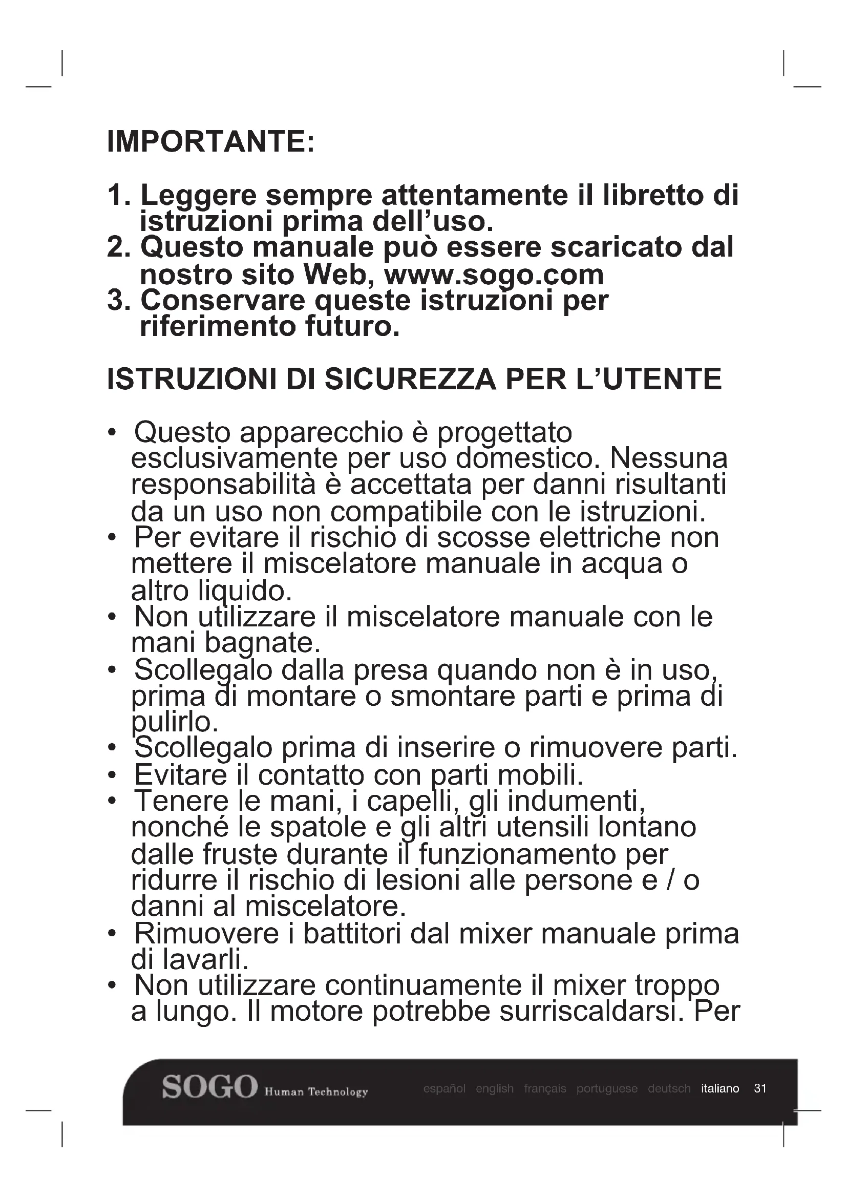 Scarica le istruzioni per il tuo Robot da cucina in formato PDF gratuitamente! Trova il tuo manuale SS14506 - Sogo e riprendi in mano il tuo dispositivo elettronico. In questa pagina sono pubblicati tutti i documenti necessari per l'utilizzo del tuo dispositivo. SS14506 del marchio Sogo.