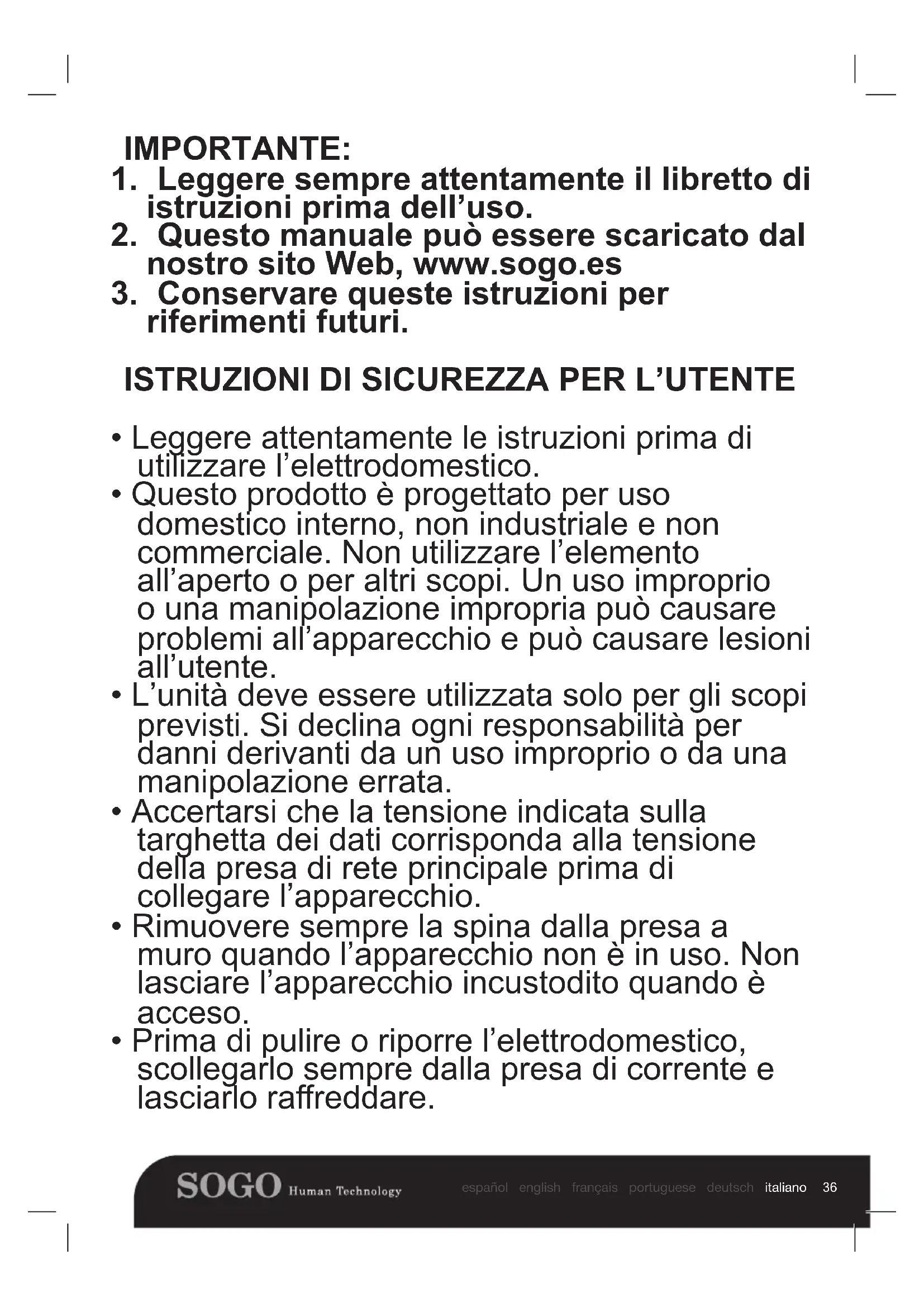 MANUALE UTENTE SS5560 Sogo
